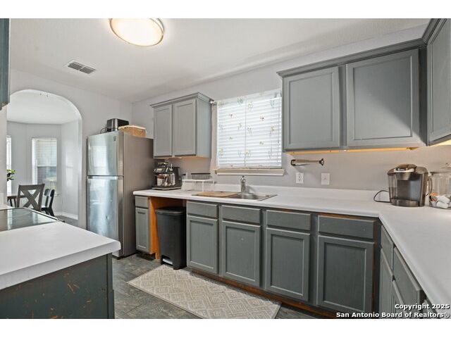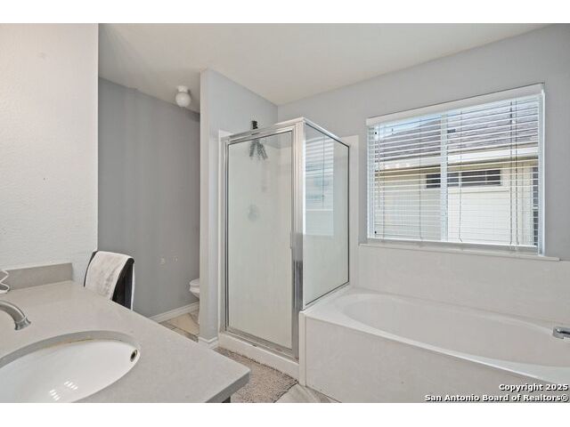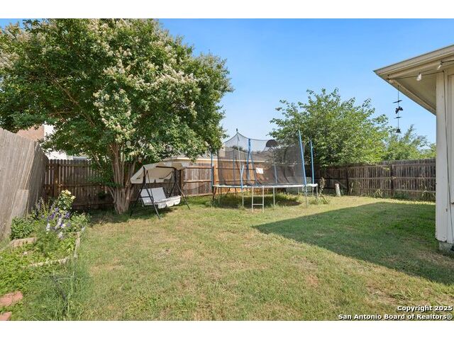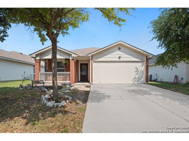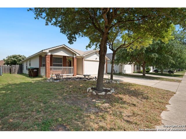 This inviting one-story home in Wild Horse Vista offers comfortable living with an open floor plan and high ceilings throughout. With 3 bedrooms and 2 bathrooms, the layout is designed for both everyday functionality and relaxed entertaining. As you step inside, you'll find archway hallways and soothing neutral tones that create a warm and welcoming atmosphere. A dining room with bay windows provides a great setting for shared meals or special occasions. The kitchen features generous cabinetry, plenty of counter space, and a convenient breakfast bar that opens to the main living area. The living room offers direct access to the backyard, making it easy to extend your living space outdoors. The primary bedroom includes a full bathroom with a soaking tub, walk-in shower, and ample room to unwind at the end of the day. Outside, the backyard includes a patio and a privacy fence-ideal for weekend gatherings or quiet evenings. Located near Wild Horse Vistas Park, schools, shopping, and Loop 1604, this home is close to everyday essentials. Schedule your personal tour today.