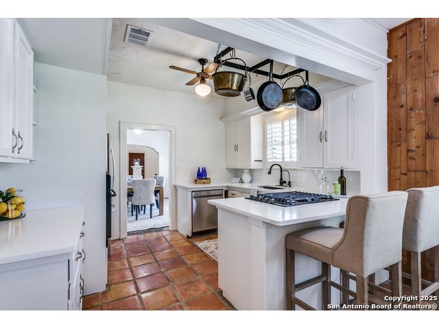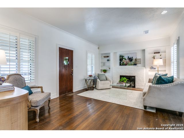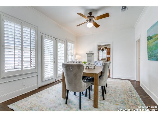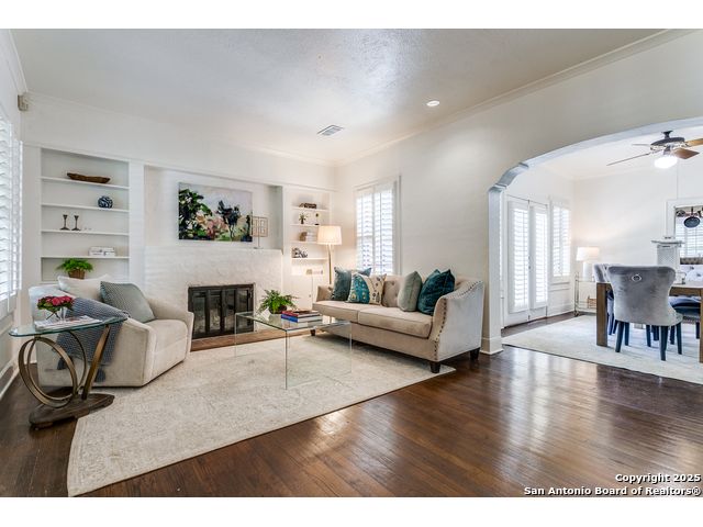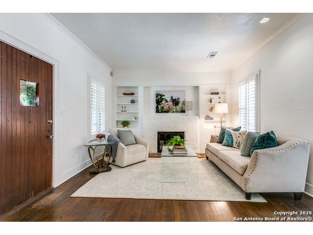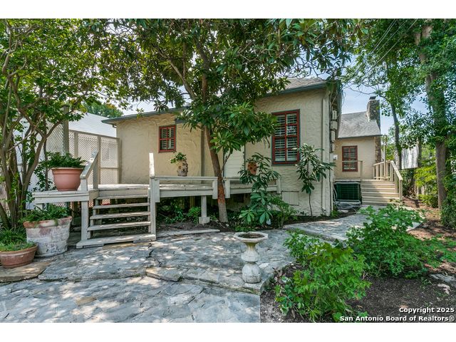 This storybook Craftsman home is charming, with many original features still in place. The welcoming front porch hides behind a lovely climbing rose bush. The cozy living room with plaster fireplace, hardwood floors, and plantation shutters opens to formal dining. The dining room has French doors to the side deck. The cute eat-in kitchen has a gas stove and stainless fridge. There are three bedrooms and two bathrooms. Large back deck, greenhouse, small inviting garden.
