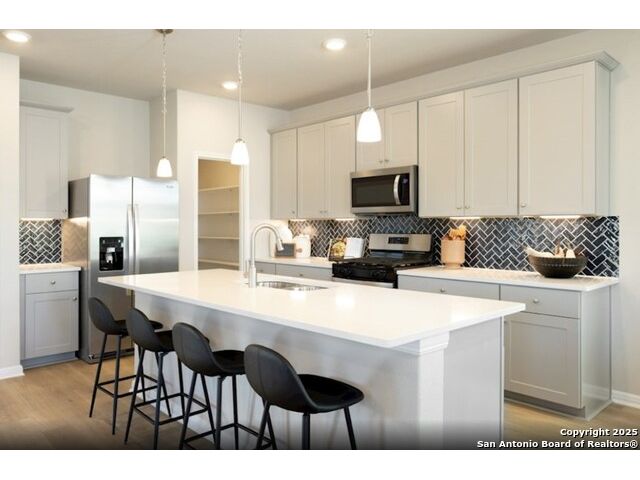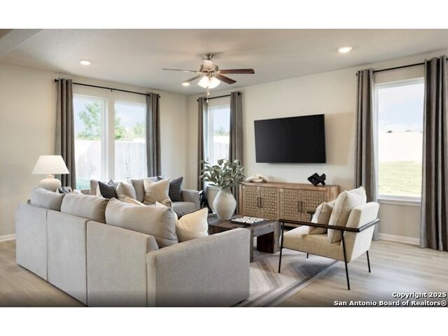Welcome to Hughes, a beautiful single-family home located in the heart of San Antonio built by Beazer Homes. This stunning home features 4beds and 2.5baths, offering ample space for comfortable living. The 2099 sq ft layout includes a spacious living room, a modern kitchen with a large island and a cozy separate dining area. The primary suite boasts ceiling fan, walk-in closet, double vanity, water closet and much more, while the additional bedrooms provide plenty of room for family or guests. Step outside to enjoy the extra landscaping in front and backyards, perfect for entertaining or relaxing. Additional highlights include covered back porch, covered front entry, and a 2-car Garage. Located in the desirable Veranda neighborhood, this home is close to Lackland Air Force Base, Loop 1604, Westover Hills Baptist Hospital and local eateries, making it an ideal choice for those seeking convenience and comfort. Veranda features a recreation center, pool, splash pad, and spaces for all ages to play! Beazer Homes is proud to be America's #1 Energy-Efficient homebuilder. In 2024, our homes achieved an average net HERS score of 37 (including solar) and a gross HERS score of 42-the lowest publicly reported scores among the top 30 U.S. homebuilders identified by Builder Magazine's Top 100 list (ranked by 2024 closings).Take advantage of our special buyer incentives which may include closing costs, design studio upgrades, FLEX dollars, and more. Reach out to us today to learn more about how you can benefit from these exclusive offers.