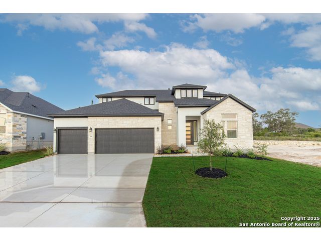 Move in Ready! Welcome to your dream home nestled in the highly desirable Hill Country of Boerne. This beautifully designed two-story home offers the perfect blend of elegance, comfort, and functionality, ideal for families or those who love to entertain. Boasting 5 spacious bedrooms and 4.5 luxurious bathrooms, this home provides ample space for everyone. The primary suite is conveniently located on the main level, with a spa like bathroom and walk in closet. At the heart of the home is a gourmet kitchen with double islands, built-in cooktop and microwave, and oven. With abundant countertop space and cabinets, you will fall in love with this kitchen immediately! Come see why so many people want a Chesmar Home in Esperanza!