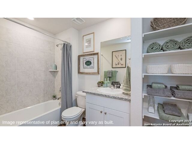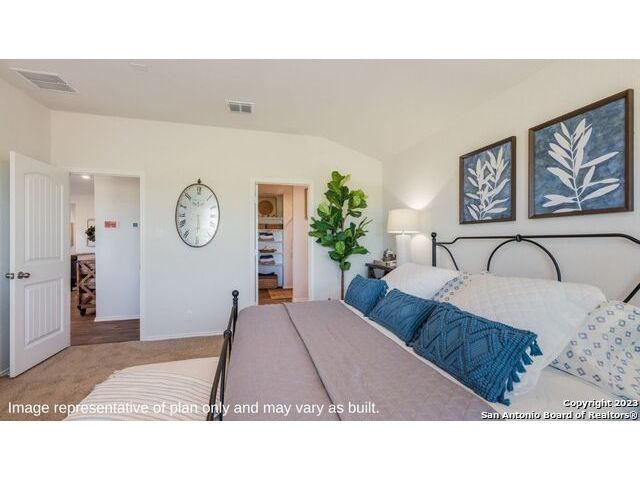 Introducing The Caroline plan, a stunning one-story home featured at Winding Creek in New Braunfels, TX. The Caroline is sure to impress with its classic front exteriors, 3 bedrooms, 2 baths, and 2-car garage. An elongated foyer welcomes you into an open concept kitchen, dining area, and living room, perfect for entertaining. This home's kitchen includes shaker style cabinetry, quartz counter tops, stainless steel appliances and a spacious kitchen island with a deep farmhouse style single basin sink. The main bedroom is located right off the living room and features a semi-vaulted ceiling and an attractive ensuite bathroom. You'll enjoy getting ready every day with plenty of bathroom space and modern bathroom features including quartz countertops, shaker style cabinets, a tiled walk-in shower and spacious walk-in closet. If privacy is your top priority, this ensuite bathroom comes standard with a separate water closet. Every bedroom has quality carpet, a closet, and windows for plenty of natural lighting. Whether these rooms become bedrooms or other bonus spaces, there is sure to be comfort and functionality. Additional features include a back patio that overlooks a fully landscaped and irrigated yard, sheet vinyl flooring in entry, living room, and all wet areas, and quartz countertops and tiled flooring in all secondary bathrooms. This home also comes equipped with our HOME IS CONNECTED base package. Using one central hub that talks to all the devices in your home, you can control the lights, thermostat and locks, all from your cellular device.