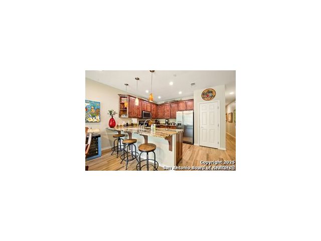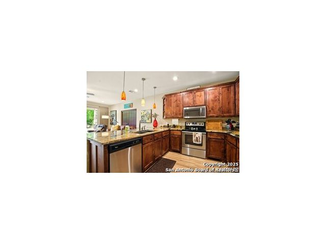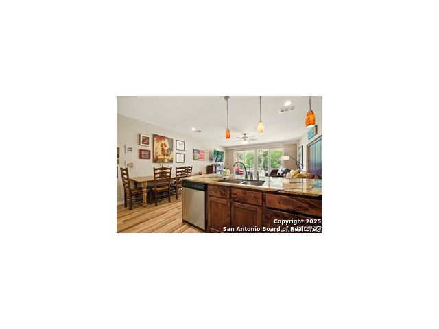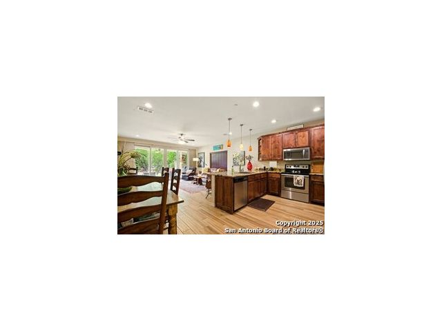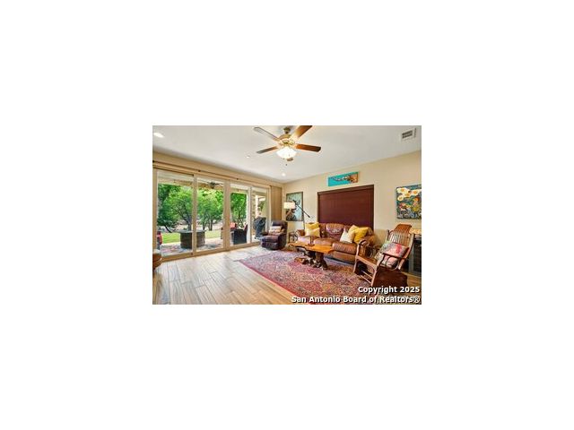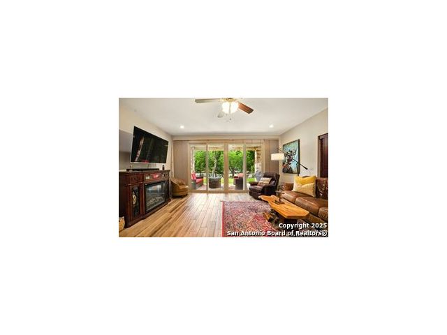Guadalupe River front living at its finest! Nestled in the gated Rio Guadalupe Condominiums, this groundlevel unit places you steps from the river's clear blue water, towering cypress and pecan trees, and iconic Fourth Crossing off River Road limestone bluffs. Spend your mornings watching kayaks and paddle boards drift by from an oversized covered patio, then head straight down the private river path for tubing, flyfishing, or a lazy swim. A resort style pool, elevator service, covered parking, controlled access gate, and an onsite outfitter round out the carefree Hill Country lifestyle. Inside, an open concept layout highlights 1,410 sq ft of thoughtfully designed space-three generous bedrooms, two full baths, and a light filled living/dining area anchored by a wall of glass that slides open to the patio. Finishes include granite counters, upgraded stainless appliances (refrigerator + washer/dryer convey), 42inch cabinetry, woodlook tile flooring runs through the living areas-durable enough for wet flipflops, stylish enough for dinner with friends, and plush carpet in bedrooms. The owners' suite features a vanity bath and walkin closet, while two guest rooms easily flex as bunk space or a home office. HVAC and electric systems are energy efficient, and construction was completed in 2017 for low maintenance peace of mind. Short term rentals are allowed, creating strong income potential when you're not enjoying the condo yourself. Minutes to Whitewater Amphitheater, Canyon Lake, Gruene, and the shopping and dining of New Braunfels, with easy access to both Austin and San Antonio. Whether you're seeking a weekend escape, fulltime residence, or STR investment, Unit 112 delivers the perfect blend of modern comfort and authentic Texas Hill Country river life.