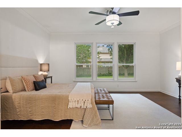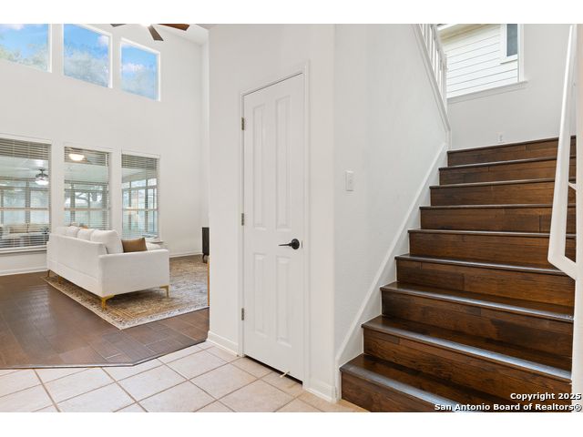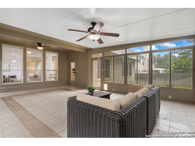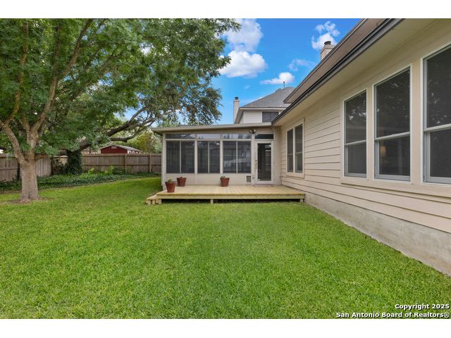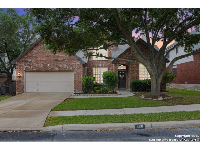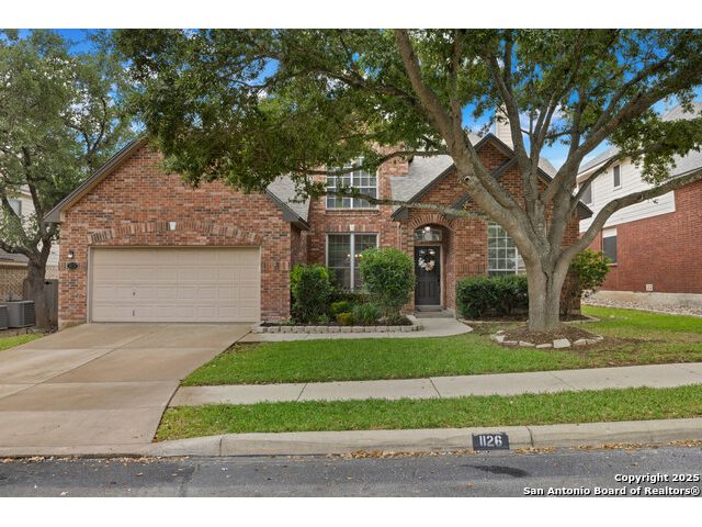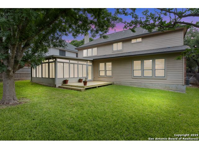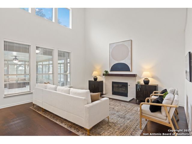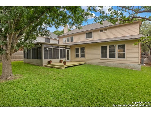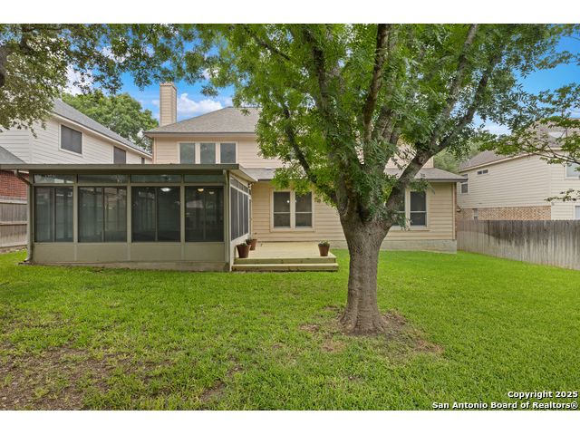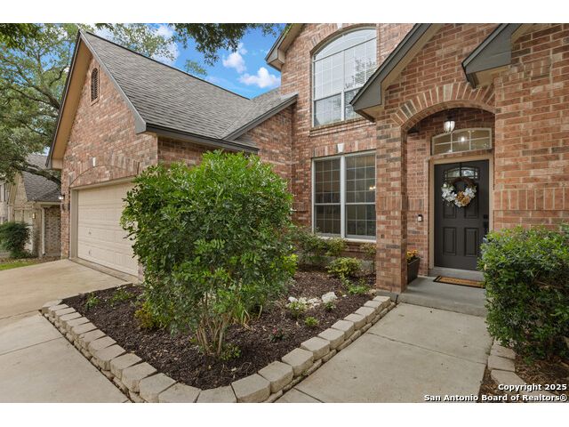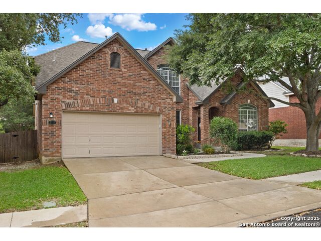 Charming Brick Home in a Gated Community with Top-Rated Schools! Tucked on a quiet cul-de-sac, this 4-bedroom, 3.5-bath home blends classic charm with modern updates. Fresh paint, engineered hardwood floors, and soaring ceilings create a bright, inviting feel the moment you walk in. The updated kitchen features warm Sandbar cabinets, black hardware, and abundant quartz counter space-perfect for cooking and entertaining. The floor plan includes a private downstairs primary suite, a formal dining room, and a spacious 25' x 17' air-conditioned sunroom (432 sq ft of extra living space). Upstairs offers a versatile game room and three additional bedrooms. Newer Andersen windows (2022) add style and energy efficiency. Located minutes from Loop 1604 and close to great shopping and dining. Neighborhood amenities include a park, playground, and two beautiful pools with an award-winning swim team. Designed for comfort, connection, and easy entertaining-this home has it all.