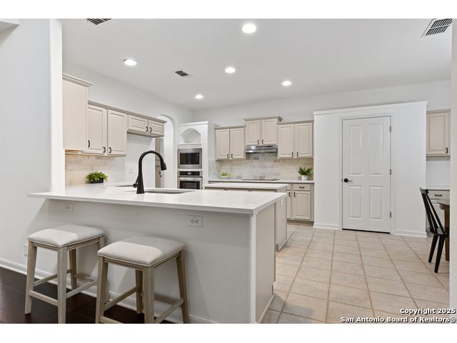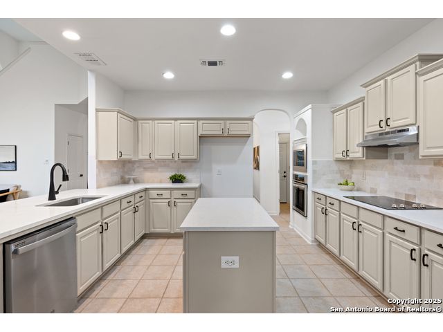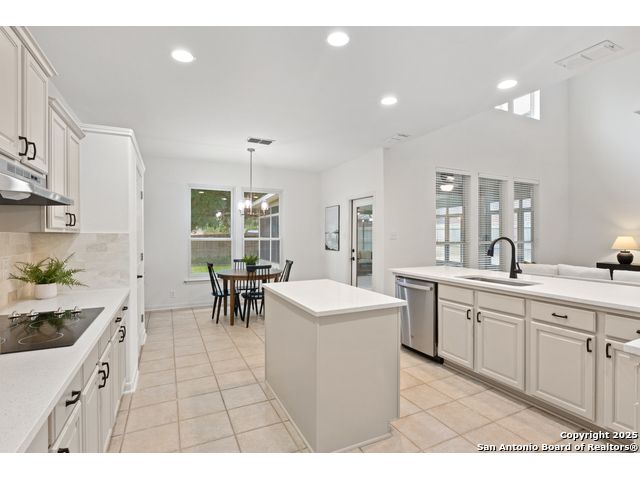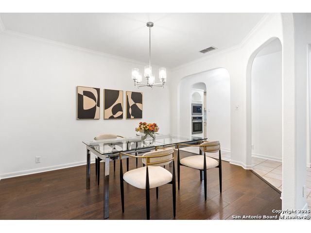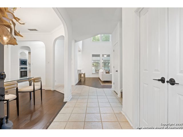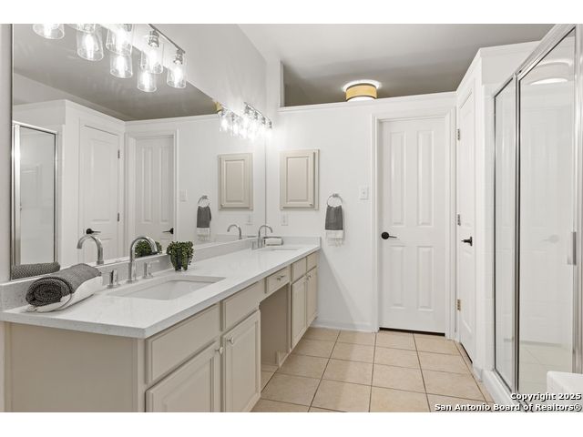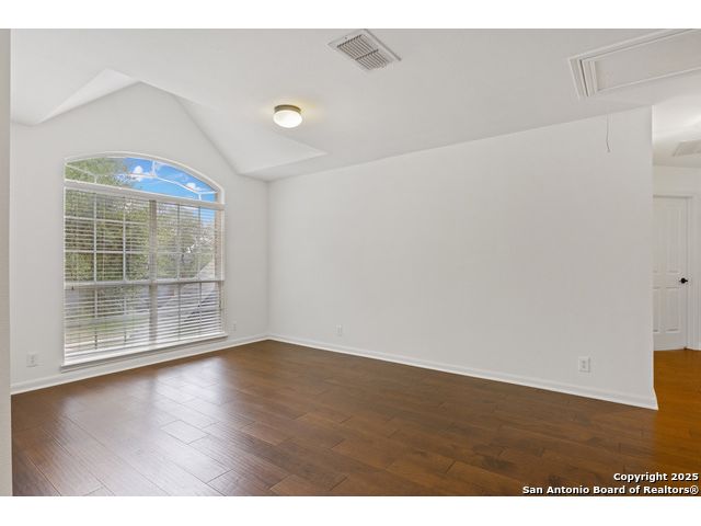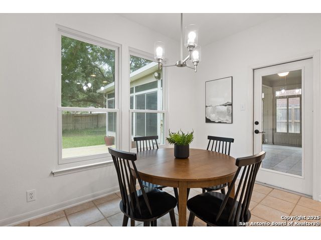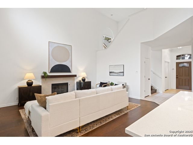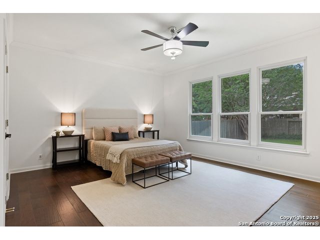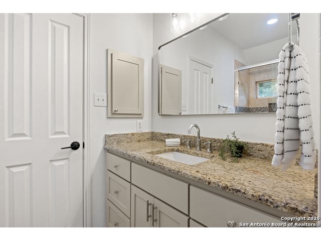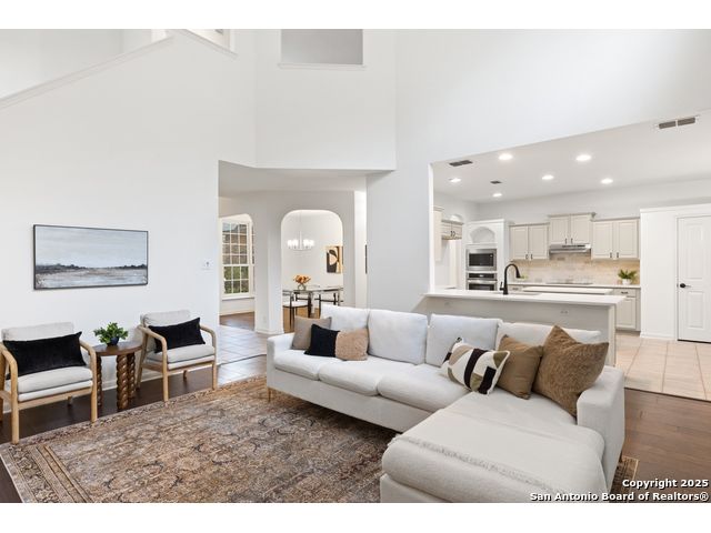 Charming Brick Home in a Gated Community with Top-Rated Schools! Tucked on a quiet cul-de-sac, this 4-bedroom, 3.5-bath home blends classic charm with modern updates. Fresh paint, engineered hardwood floors, and soaring ceilings create a bright, inviting feel the moment you walk in. The updated kitchen features warm Sandbar cabinets, black hardware, and abundant quartz counter space-perfect for cooking and entertaining. The floor plan includes a private downstairs primary suite, a formal dining room, and a spacious 25' x 17' air-conditioned sunroom (432 sq ft of extra living space). Upstairs offers a versatile game room and three additional bedrooms. Newer Andersen windows (2022) add style and energy efficiency. Located minutes from Loop 1604 and close to great shopping and dining. Neighborhood amenities include a park, playground, and two beautiful pools with an award-winning swim team. Designed for comfort, connection, and easy entertaining-this home has it all.