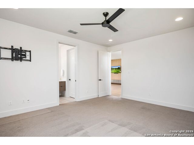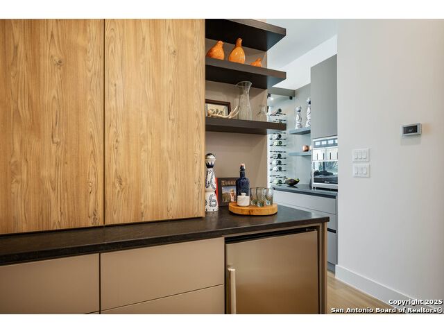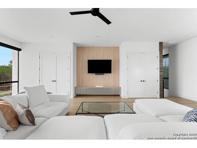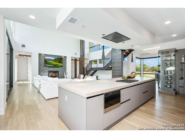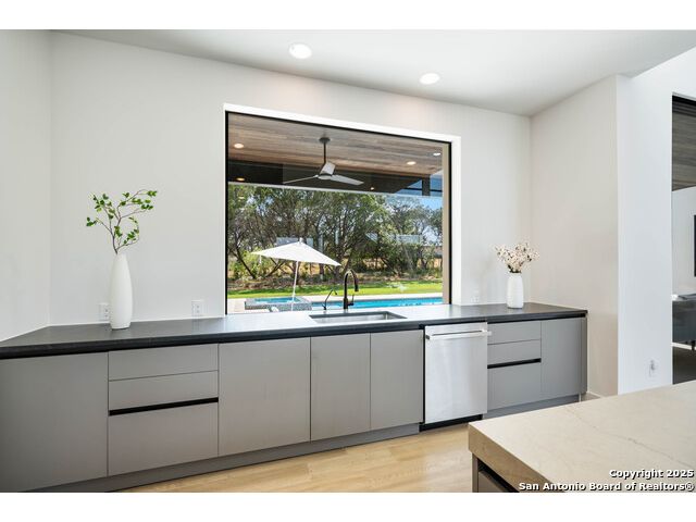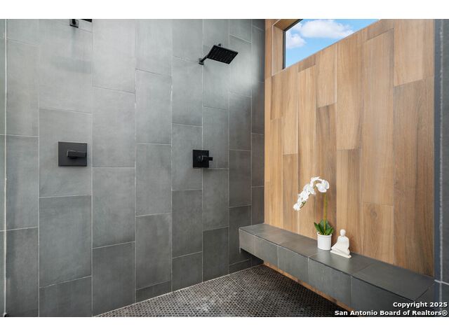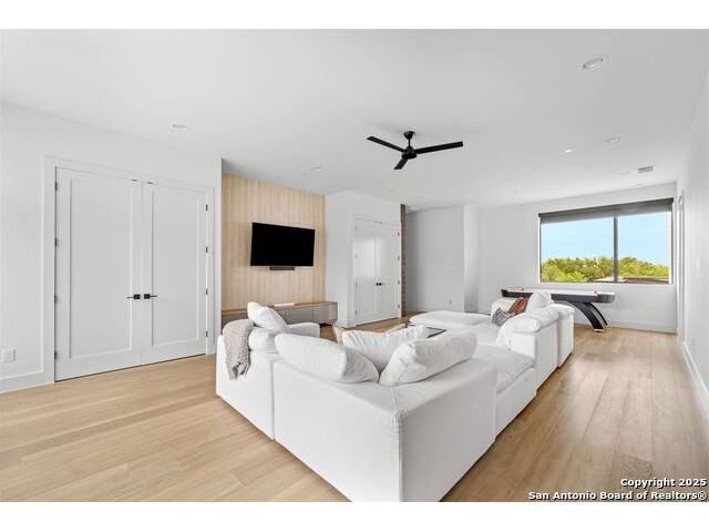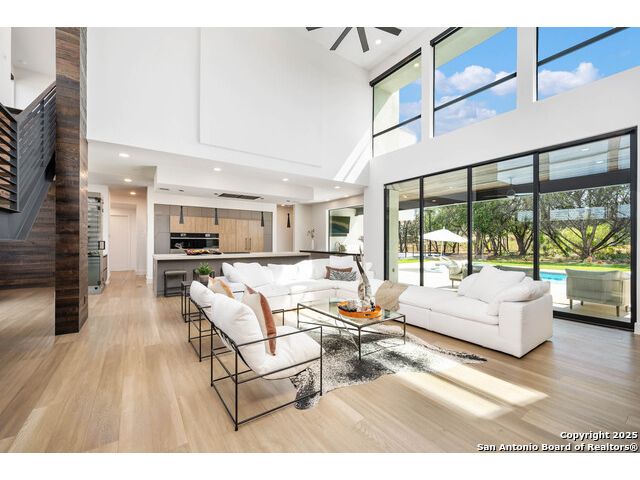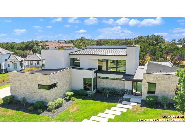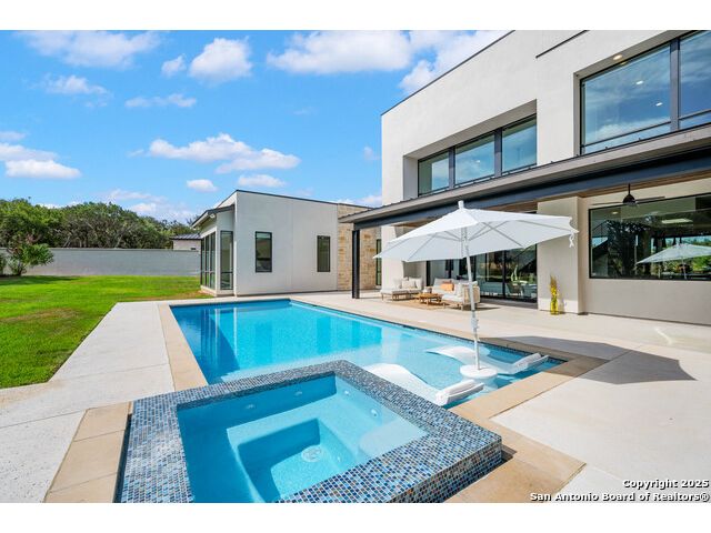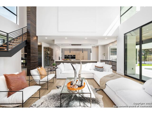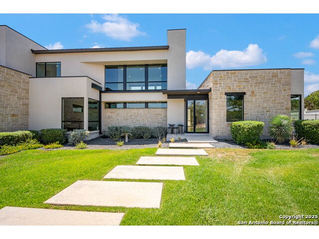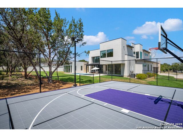 Sumptuous organic Contemporary home in convenient and exclusive Huntington at Shavano Park...new on the market and ready for you! Offering room for everyone, this home was built for luxurious entertaining and living with its expansive & light-filled interiors, windows, and easy living floorplan. Outdoor living is fun with the refreshing pool, hot tub, Covered patio, Grill Station and Sport Court (pickleball!!). The architectural interiors are well planned: Wine and whiskey can be featured in your home with the glass cased storage, Dacor 4 Bottle Wine Dispenser, and built-in Serving area. The kitchen offers Dual Ovens, Stone counters, Italian cabinetry and the best of everything a Chef or Entertainer would need, including a prep area w/appliance storage and large pantry. The Owner's Suite features Dual Closets, Statement Wall w/Mood lighting in the Luxe bathroom. A spacious guest or 2nd Primary suite w/beautiful bath and large closet is located on the opposite side of the home on the main level. The front corner bedroom is currently set up as a gym w/close access to full bath; the flex room on main level is built out with shelving, pull-out, en-suite bath, closet and would be perfect for exercise, music or additional office or library space (there is a window that is covered up). Upstairs, you'll find expansive gameroom w/built-ins and closets, powder bath plus 3 additional secondary bedroom suites each w/their own private bath. OTHER FACTS: Whole House Generator; Motorized Hunter Douglas Shades; NOVO Water Softener System. Custom built by Adam Wilson homes, 211 Wellesley Hill is well-located in the neighborhood and the city in guard gated Huntington @ Shavano Park.