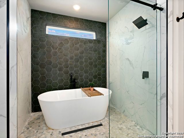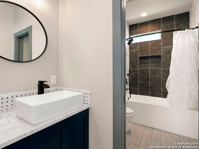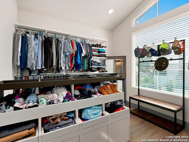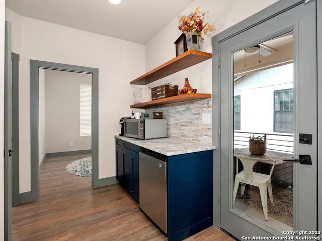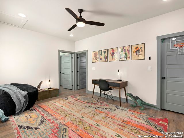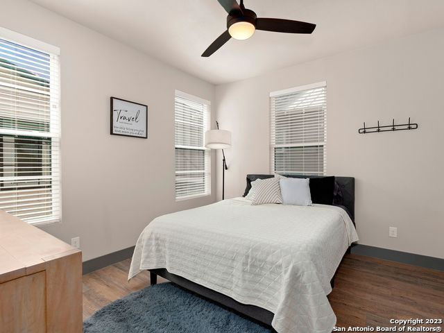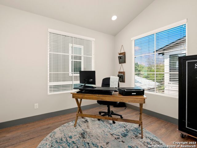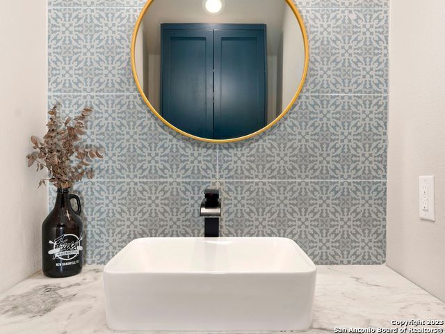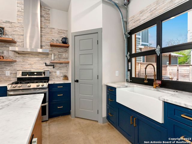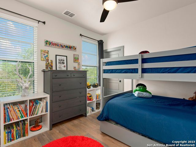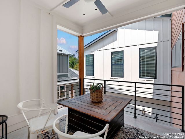 Tucked into one of New Braunfels' most sought after neighborhoods, this exceptional two story modern home blends sleek design with the charm of a tight knit community. Designed with everyday luxury in mind, the open concept floor plan flows effortlessly between the living, dining, and kitchen areas, enhanced by soaring ceilings, abundant natural light, and premium finishes throughout. At the heart of the home, the chef inspired kitchen features a unique garage door window that opens directly to the outdoor entertaining space, perfect for serving drinks by the pool. A whole home surround sound system enhances both indoor gatherings and outdoor relaxation. The primary suite offers a peaceful retreat with a spa inspired en suite bath, featuring a spacious walk in shower, dual vanities, and a generous walk in closet. Upstairs, you'll find well sized secondary bedrooms and a flexible loft area ideal for a home office, game room, or media lounge. An additional space above the secondary bedrooms is prepped for finish out with A/C and electricity. Step outside to your own private backyard oasis, featuring a 10x15 heated plunge pool that can be enjoyed year round. The low maintenance turf lawn adds ease and beauty to the space, while the oversized garage provides ample storage or room for a golf cart. With a walkable location near local shops and restaurants, and a layout designed for both everyday comfort and stylish entertaining, this home truly captures the quintessential New Braunfels lifestyle.