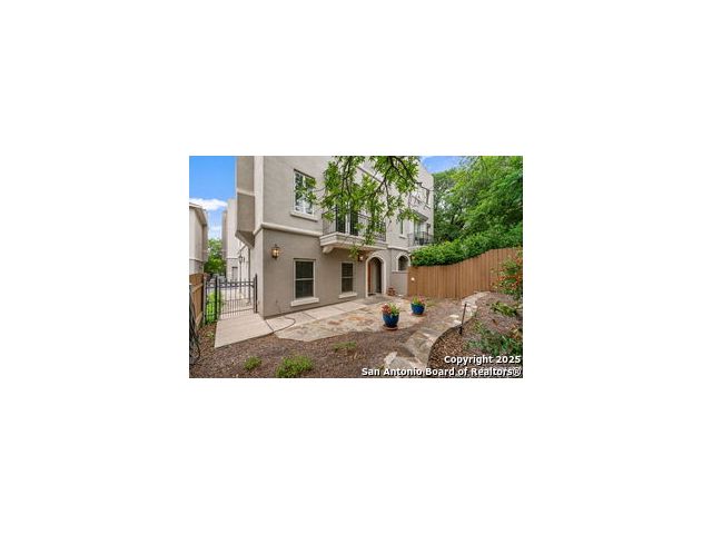 Experience the Ultimate Urban Lifestyle minutes from downtown with a Private Rooftop Access! Contemporary style meets timeless elegance in this stunning townhome-style condominium located in the heart of historic Monte Vista. Perfect for those seeking a seamless transition to urban living, this beautiful tri-level home offers both luxury and convenience. Step into a private courtyard with low-maintenance yard upkeep-ideal for relaxing or entertaining. Enjoy breathtaking panoramic views of downtown San Antonio from your expansive rooftop deck. Inside, every room reflects refined taste and thoughtful design. The first floor serves as a versatile space-perfect for a home office or guest suite. On the second level, you'll find an inviting layout featuring a chef-inspired kitchen. The adjacent living area boasts a cozy fireplace and access to a balcony with serene treetop views. The upper-level primary suite is a true retreat, complete with two walk-in closets and a spa-like bathroom showcasing a stand-alone soaking tub, walk-in tile shower, and dual vanities with soapstone countertops. A secondary bedroom, full bath, and laundry area complete this level. The spiral staircase leads to the rooftop access with AMAZING downtown views - must see it in the evenings to truly appreciate. Additional highlights include ample storage throughout, an attached two-car garage, and generous guest parking (located right next to the unit). Located just minutes from Hwy 281 and Loop 410, this exceptional home offers quick access to downtown, the airport, the University of the Incarnate Word, Trinity University, and the Pearl District.