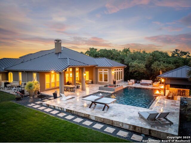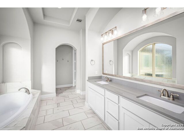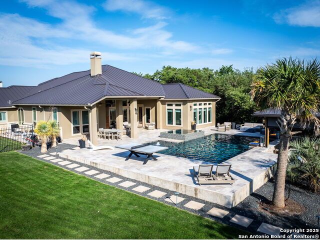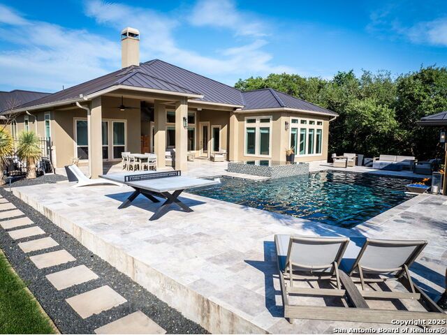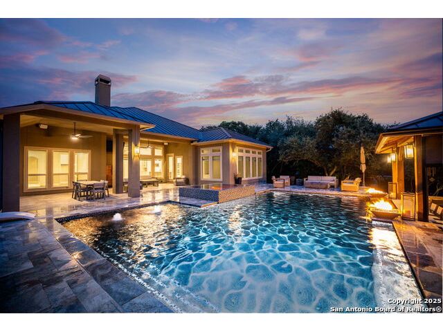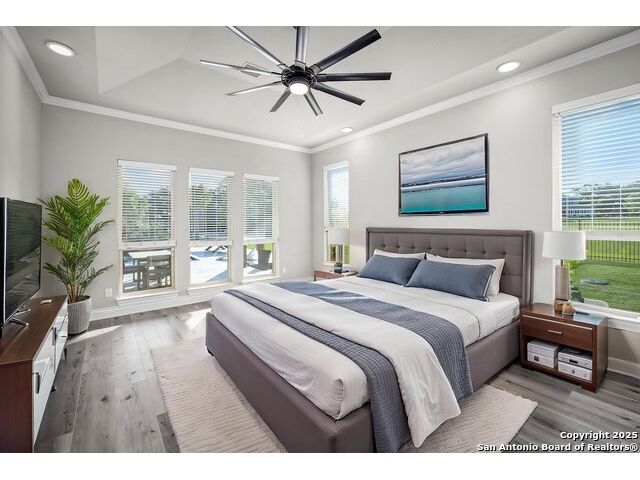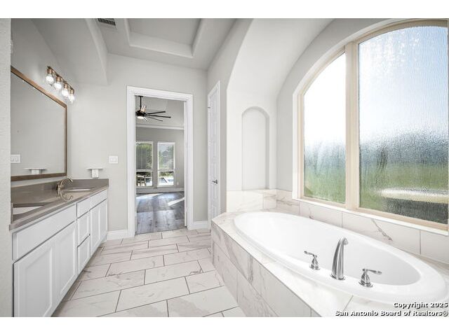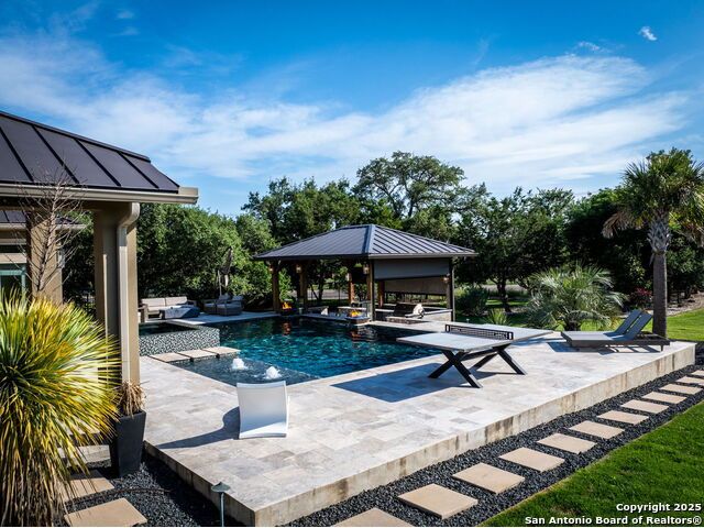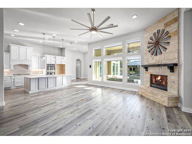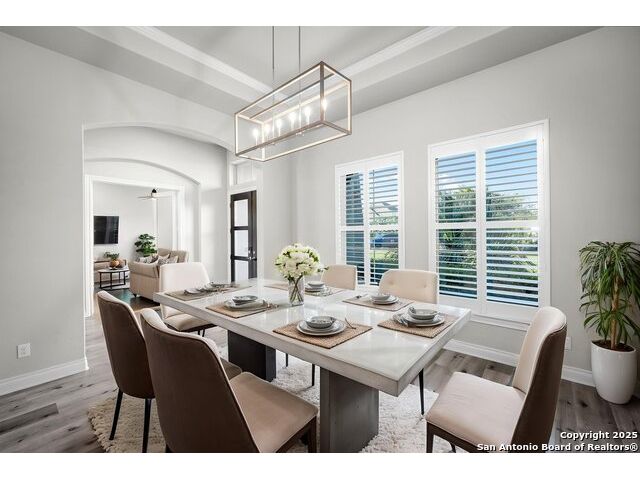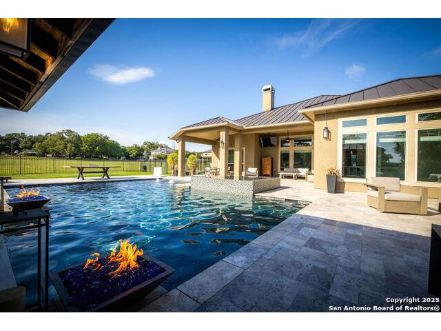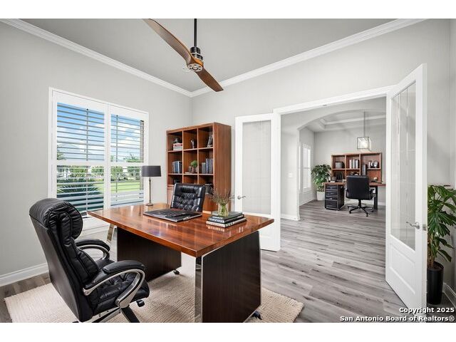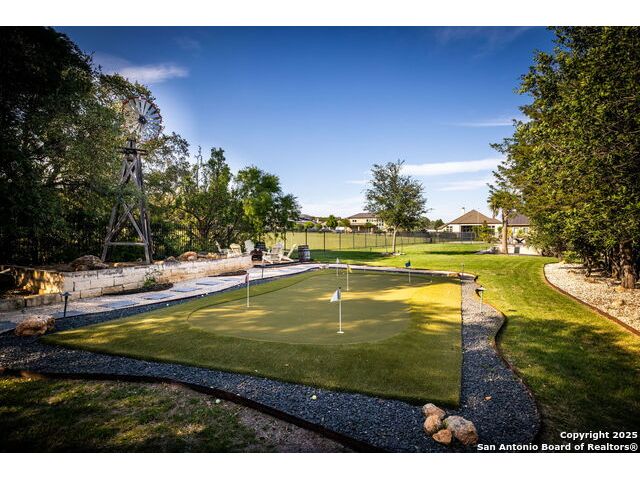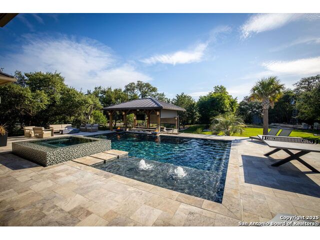 Nestled within the gated Newcombe Estates, this exquisite home welcomes you with double mahogany front doors. Upon entry, you'll find a library adorned with French doors and a formal dining room featuring a rotunda ceiling. The open family room, boasting a wall of windows and a cast stone fireplace, seamlessly transitions into the kitchen and morning area. Elegant ceramic tile floors extend throughout. The kitchen is equipped with an island with built-in seating, a walk-in pantry, and a Butler's pantry. Adjacent to the morning area, discover a game room with double doors. The private master suite offers serene views through a wall of windows. The master bath includes a garden tub, a separate glass-enclosed shower, dual sinks, a linen closet, and a spacious walk-in closet. A guest suite features a full bath and walk-in closet. The design is completed with secondary bedrooms, a mudroom, and additional linen closets. Outside, enjoy the extended covered patio, a resort-style pool and hot tub, along with an attached covered outdoor kitchen featuring a bar area level with the pool. A five hole putt putt adds to the outdoor amenities. Irrigation system and three-car split garage complete this remarkable home. The community features 13 tennis courts, pickle ball courts, fitness center, pro-shop, pool complex, and weekly activities for all.