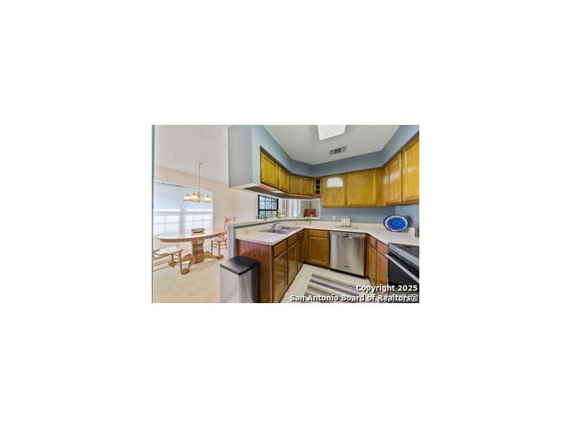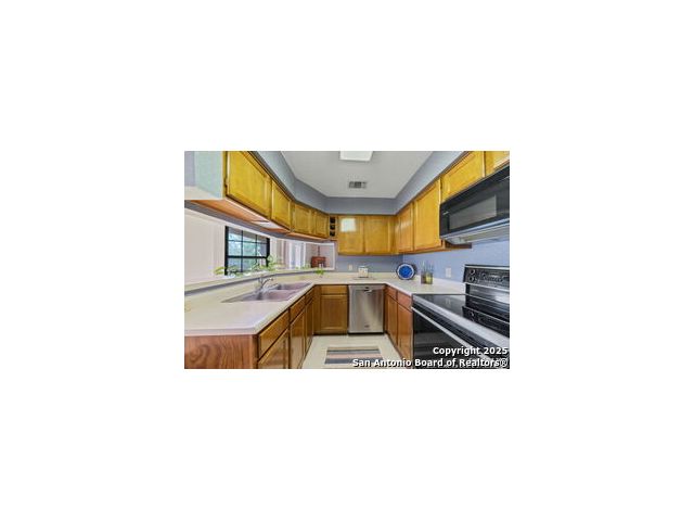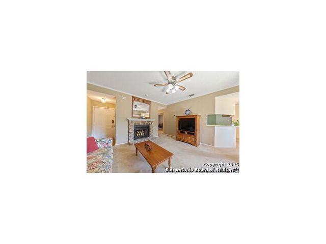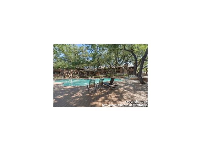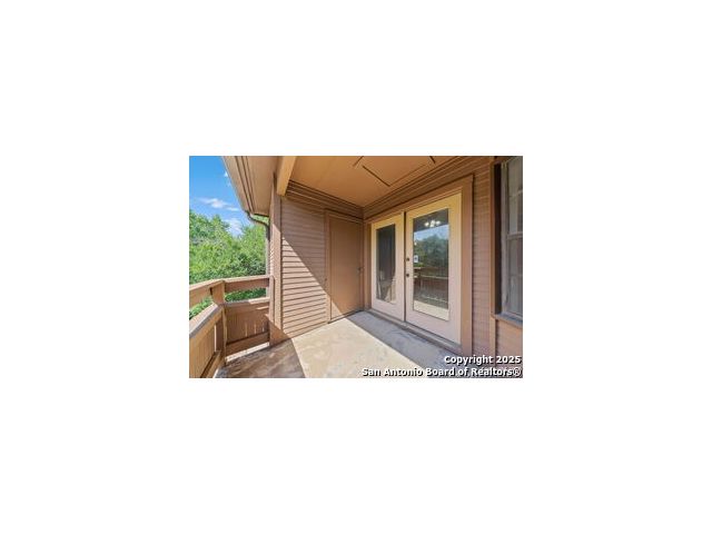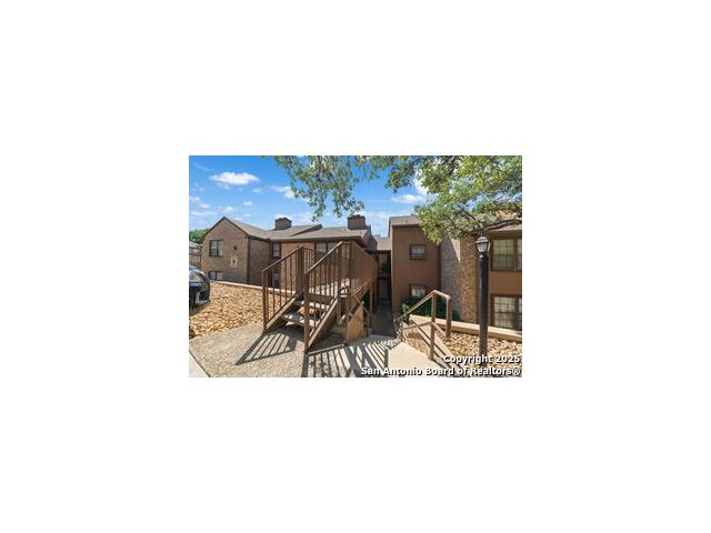 Nestled in the highly desired and centrally located Whisper Hollow Condominiums, this 2-bedroom, 2-bath condo offers low-maintenance living with resort-style amenities. The community features beautifully maintained landscaping with mature oak trees, a large swimming pool with jacuzzi, tennis courts, and a clubhouse. This single-story condo boasts an inviting living area with a cozy wood-burning fireplace and French doors that open to a private covered patio with a storage and utility closet. The eat-in kitchen offers a breakfast bar, and ample cabinet and counter space for all your storage needs. Spacious primary suite features a huge walk-in closet and a full bath with dual vanities and a tub/shower combo. The secondary bedroom is generously sized and can easily serve as a guest room, home gym, or office. Although located on the second level, this single-story condo offers direct access from the parking lot - providing the convenience of a ground-level unit. Move-in ready and ideally located with easy access to Loop 1604, I-10, Loop 410, and Wurzbach Parkway. Convenient to the Medical Center, USAA, H-E-B Alon, and plenty of local shopping and dining. Schedule your showing today!
