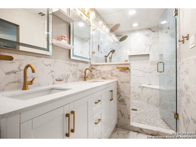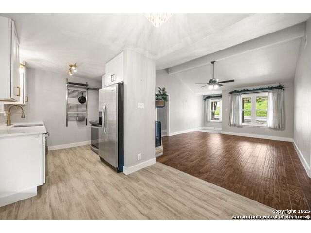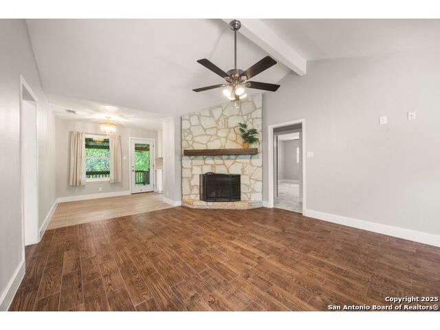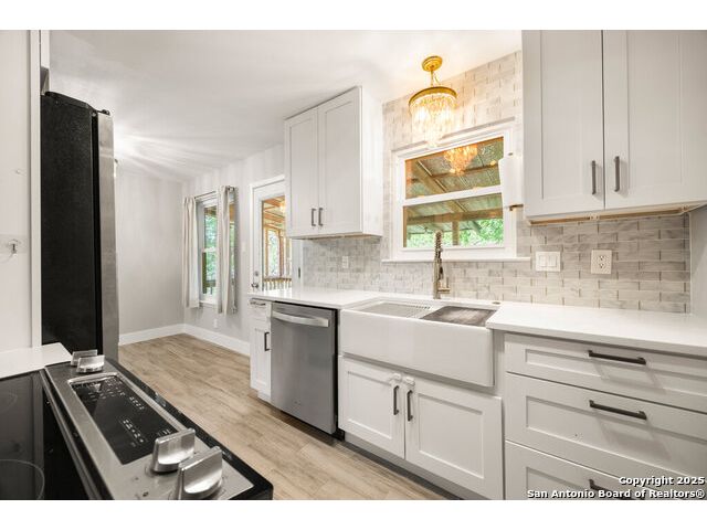Very Aggressive Price Reduction. Motivated Sellers! Ranger Creek gem! This is your chance to get into Boerne area (outside city limits-no city taxes, USDA and assumable VA 3.69 available). Don't wait to see all the upgrades in this country elegant single-story ranch. The primary bed/bathroom are an absolute oasis. Feel the luxury of the 5'x8' shower with ample space including double vanity. Gorgeous floors and quartz countertops thru the kitchen and bath. Kick back and relax in the spacious living room with a working wood burning fireplace and high ceilings. Custom cabinets dressed in glamorous hardware and accent lighting for the kitchen with an "extra" touch. New appliances add to the joy of cooking/entertaining. Reconfiguration of the space allows for more storage too. Over the sink window and sliding glass door overlook the spacious deck offering a view of the undisturbed natural woods. Privacy is key! The house is at the end of the road far from neighbors and in the cul-de-sac at the top of the hill. The extra-large inhouse laundry room is a vision of true style with designer flooring, pet washing sink, and extra storage. Enter the house from the front door under a covered porch, the side door off the naturally shaded parking, or the deck that is gated from the drive side of the house. The amazing high-rise, fully covered deck is just one of the outdoor rec space options. Leaving the back natural is the perfect choice when you have a HUGE side yard for pets and people to rest and play. The almost half acre lot feels like much more! The total upgrade list includes - new roof, new HVAC, new windows, interior/exterior paint and trim, designer flooring, primary bed/bath expansion, all new primary bathroom, all new kitchen including custom cabinets, counters, and appliances, and addition of designer laundry room. Don't wait to inquire or show!