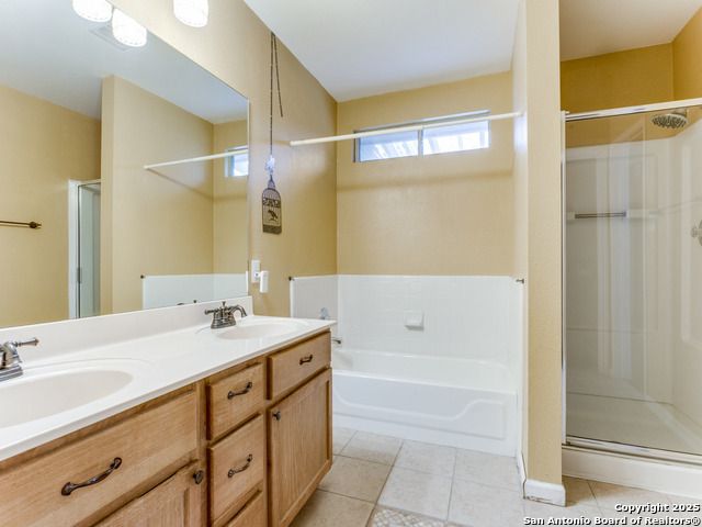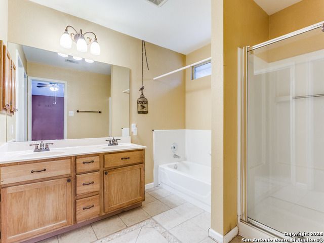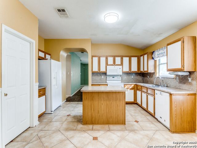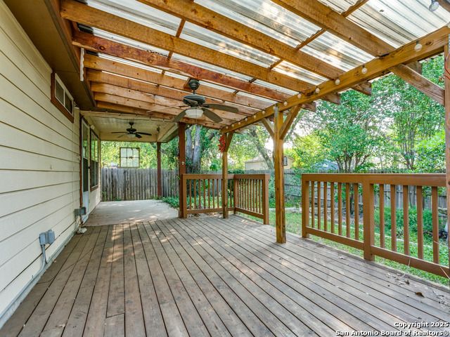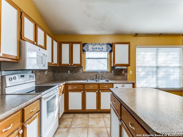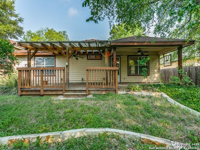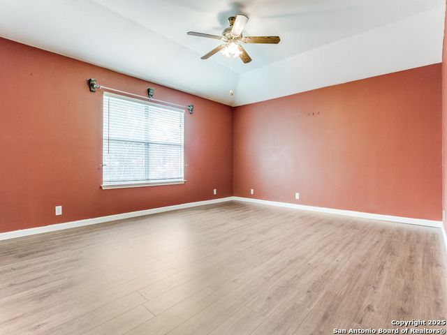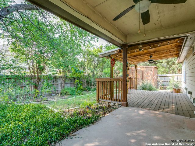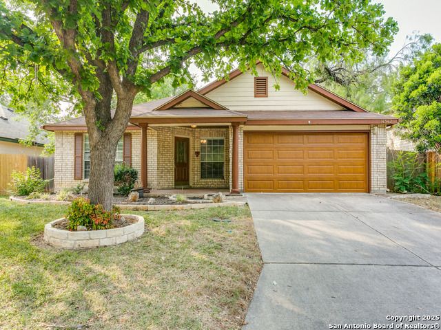 Beautiful brick one-story home located in the small gated community of Thousand Oaks Forest. Enjoy the shade of a majestic oak tree from the spacious front porch before stepping inside to wood floors flowing through the open living and dining area. The large island kitchen features a smooth cooktop, built-in microwave, and matching refrigerator, and opens to a bright breakfast nook and expansive freshly painted to neutral color large family room. The private primary suite at the rear of the home offers double vanities, a garden tub, and a separate shower. Step outside to a gorgeous covered patio with lush landscaping, stone walkways, and a storage shed. Additional highlights include ceiling fans, water softener, and new roof in 2018, new HVAC in 2020.
