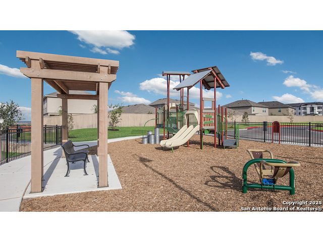 The Estero is a charming one-story home featured in Applewood in San Antonio, TX. Featuring 2 classic front exteriors, this 4 bedroom, 2 bathroom home also offers 1586 square feet of living space and a 2-car garage. A front porch (per plan) welcomes you into the home and opens to the gourmet kitchen which includes quartz counter tops, shaker style cabinets, stainless steel appliances and an open concept floorplan with the kitchen flowing seamlessly into the dining room and living room. The main bedroom has an attractive ensuite bathroom that features a quartz vanity countertop, shaker style cabinetry and a spacious tiled walk-in shower. Enjoy additional storage with a large walk-in closet in the primary bedroom. Your secondary bedrooms all feature quality carpet flooring and a closet, and can be used as bedrooms, offices, work out spaces or other bonus rooms. The possibilities are endless with The Estero floor plan. Additional features include sheet vinyl flooring in entry, living room, and all wet areas, quartz counter tops in all bathrooms and HOME IS CONNECTED base package. Using one central hub that talks to all the devices in your home, you can control the lights, thermostat and locks, all from your cellular device.