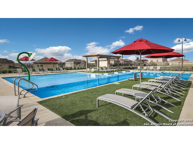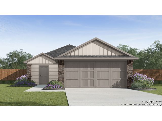 The Estero is a charming one-story home featured in Applewood in San Antonio, TX. Featuring 2 classic front exteriors, this 4 bedroom, 2 bathroom home also offers 1586 square feet of living space and a 2-car garage. A front porch (per plan) welcomes you into the home and opens to the gourmet kitchen which includes quartz counter tops, shaker style cabinets, stainless steel appliances and an open concept floorplan with the kitchen flowing seamlessly into the dining room and living room. The main bedroom has an attractive ensuite bathroom that features a quartz vanity countertop, shaker style cabinetry and a spacious tiled walk-in shower. Enjoy additional storage with a large walk-in closet in the primary bedroom. Your secondary bedrooms all feature quality carpet flooring and a closet, and can be used as bedrooms, offices, work out spaces or other bonus rooms. The possibilities are endless with The Estero floor plan. Additional features include sheet vinyl flooring in entry, living room, and all wet areas, quartz counter tops in all bathrooms and HOME IS CONNECTED base package. Using one central hub that talks to all the devices in your home, you can control the lights, thermostat and locks, all from your cellular device.