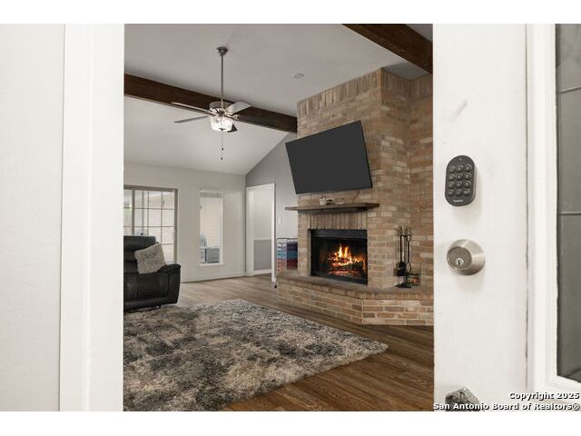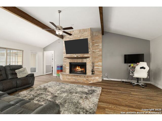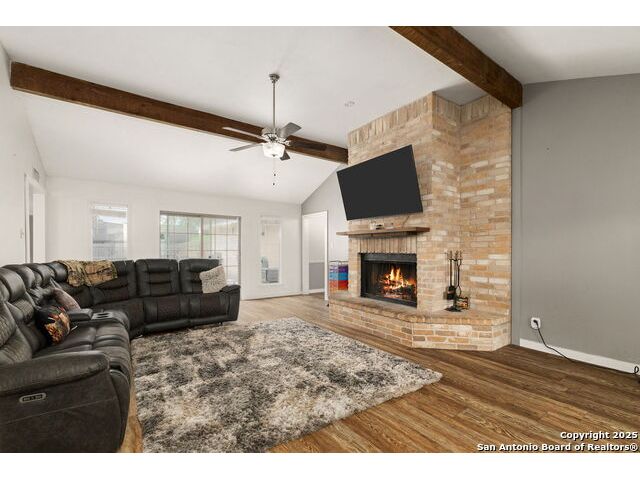 Welcome to this beautifully maintained 1,844 sq ft home nestled in a desirable neighborhood! Featuring 3 spacious bedrooms and 2 full bathrooms, this property offers comfort, style, and functionality. The inviting living room boasts a cozy fireplace and gleaming wood floors, perfect for relaxing evenings or entertaining guests. Enjoy cooking in the open-concept kitchen with a convenient breakfast bar, ideal for casual dining. The mud room adds practicality, keeping your home tidy and organized. A 2-car garage provides ample storage and parking space. Situated on a corner lot in a peaceful cul-de-sac, the home offers both privacy and community charm. You're just minutes from shopping, dining, and entertainment, making this the perfect location for convenience and lifestyle. Don't miss the opportunity to make this warm, welcoming home yours!