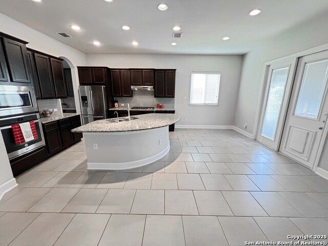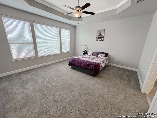 VA assumable loan with a 3.75% available for buyers with the cash to make up the difference. Beautiful 3 Bed, 3 Bath, 3 Car Garage 2451 sq ft home on a 0.25 acre cul-de-sac lot. New Paint! 10 ft ceilings throughout. Study with French doors connected to a full bath. Formal Dining Room. Elegant foyer rotunda opens to a Huge Living Room & Open Kitchen. Kitchen with stainless steel appliances including Fridge, Gas Stove, Built in Oven, Microwave, Dishwasher. Dark wood cabinetry, large Granite kitchen island, Butler Pantry and Walk-in Pantry. Primary Bedroom with tray ceiling, Ceiling Fan, Spacious Walk-in Closet. Primary Bath with double vanity, separate Shower, Garden Tub. Large Fenced yard with Huge covered patio is great for entertaining. 3 Car Garage with Opener, Water Softener, Sprinkler System. Community Pool, Jogging Trails. School in the subdivision. Quick access to Hwy 211, Hwy 90, Lackland, Loop 1604, Shopping.