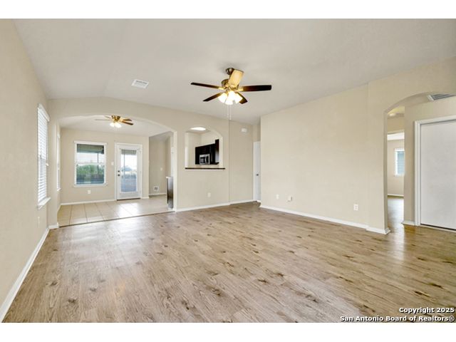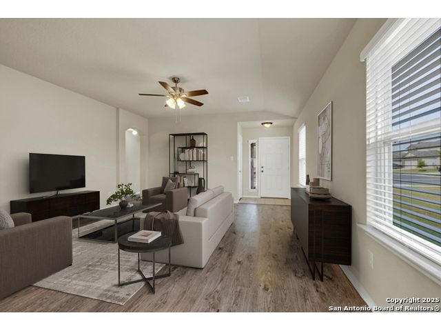 Why wait to build when you can own this wonderful 3-bedroom 2-bathroom home nestled in the Meadows at Nolte Farms sooner? Step inside to find inviting arched entryways and decorative nooks adding character to every corner. The Spacious owner's suite and ensuite features a walk-in shower with convenient seating. Each bedroom offers ample space, ensuring privacy and comfort for every family member. This home boasts an open concept with zero carpet throughout, making it perfect for easy maintenance. Enjoy the large backyard with an enclosed patio. Equipped with fans, it's perfect for enjoying breezy evenings and entertaining guests. Take advantage of the vibrant community amenities, including a sparkling pool and park. Nestled in the heart of historic Seguin, this home blends small-town charm with modern accessibility. Centrally located, you're minutes away from I-10, and perfectly positioned between the scenic Hill Country, San Antonio, and Austin. With proximity to premier shopping, restaurants, and major thoroughfares, your lifestyle here is both serene and connected.