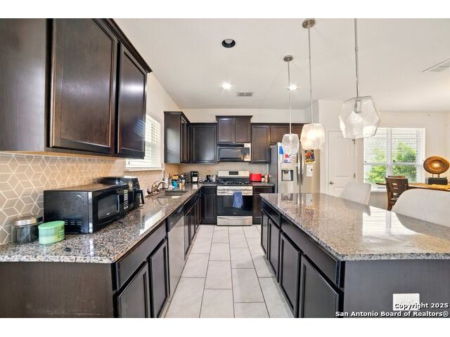 Located in the popular Alamo Ranch community, this home offers a comfortable and functional layout with plenty of natural light. The open kitchen features granite countertops, stainless steel appliances, and flows easily into the dining and living areas-great for everyday living or hosting guests. The spacious primary suite includes a private bath and walk-in closet. Outside, enjoy a covered patio and a backyard with plenty of potential to make it your own. Neighborhood amenities include a pool, playgrounds, and walking trails. Close to top-rated schools, shopping, dining, and major highways, this home offers convenience and community. Schedule a showing today!