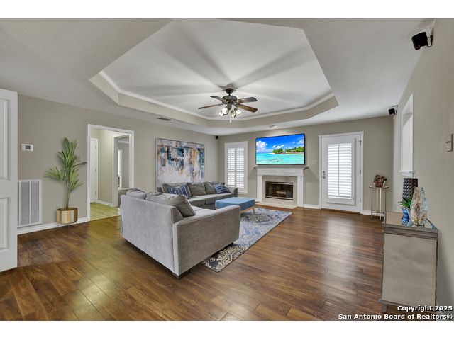 Do not miss this large, charming garden home in beautiful, sought-after South Bank in New Braunfels Tx. Located with easy access to I-35, and less than 3 miles from downtown New Braunfels. The home is one of the larger floor plans built by Roger & Norma Schultz Custom Homes. Sitting at just under 2000 sq. ft. the home features 3 large bedrooms, 2 baths, a formal dining room, a breakfast area, and a large family room with a fireplace. Extra features include skylights, tray ceilings, ample closet storage, epoxy garage coating, alley garage entry, large two-car garage, owned water softener, wired for surround sound, secured side patio for entertaining, and a play area for family and pets. Take advantage of the state-of-the-art exercise facility, large community pool, and cabana. Other community amenities include lighted tennis and basketball courts, a children's play area, a community pool, and a gazebo picnic area overlooking the pier on the Guadalupe River. Come on out and take a look!