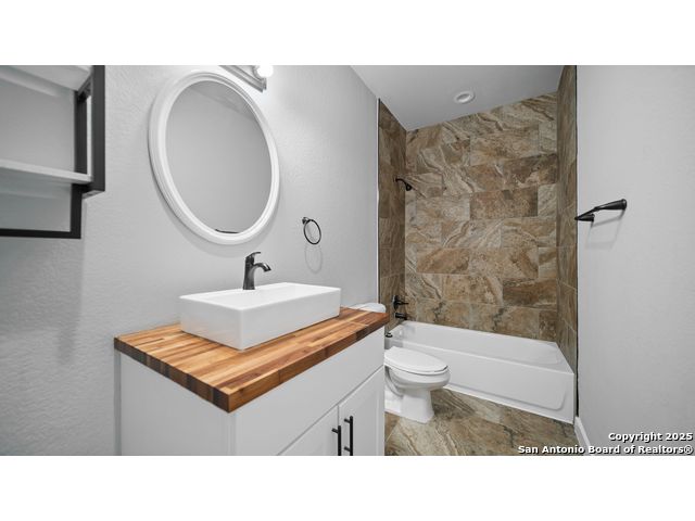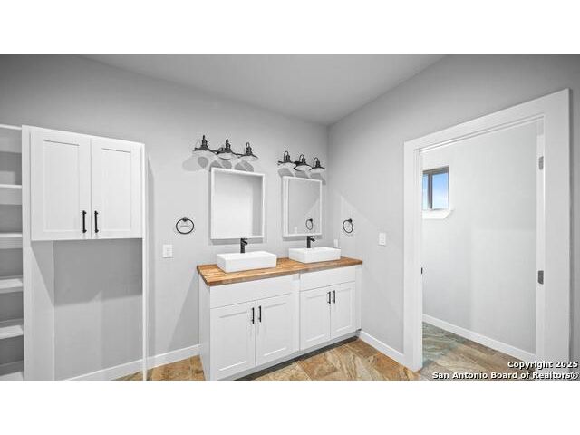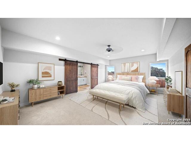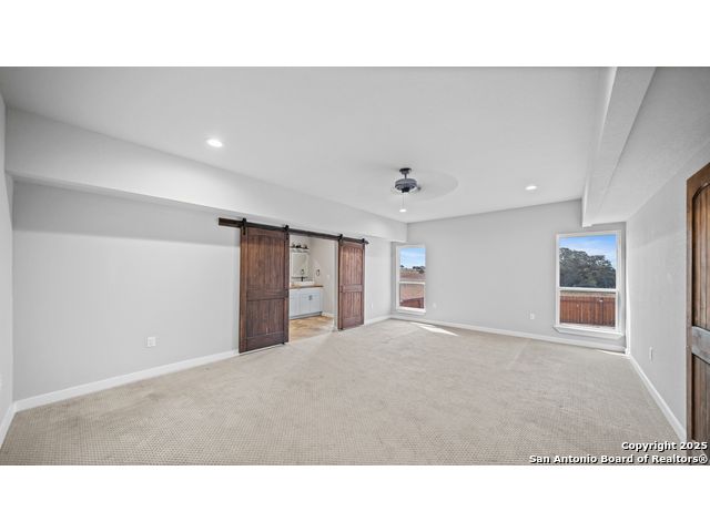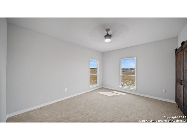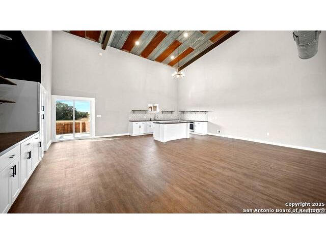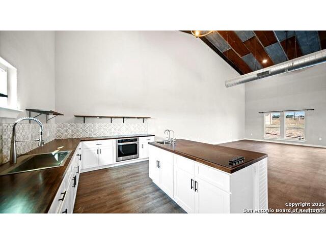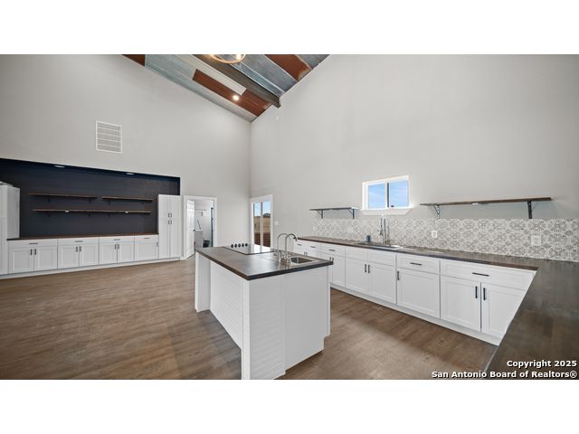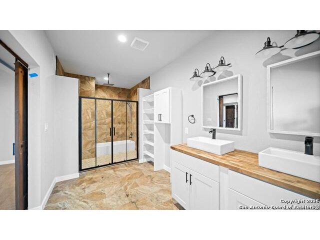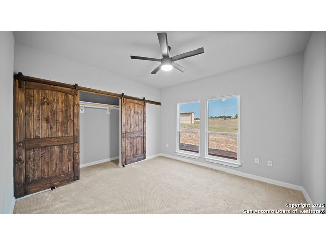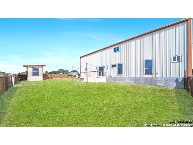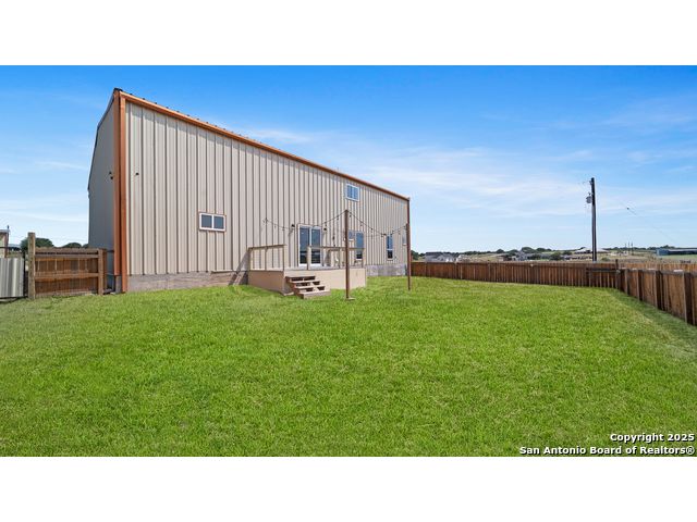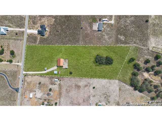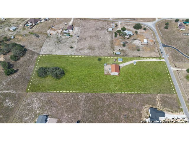 Discover the charm of the countryside with this expansive and contemporary barndominium situated on five acres within the highly desirable Lake Valley Estates subdivision and served by the equally sought out La Vernia Independent School District. This remarkable residence features one of the most substantial living spaces in the area, encompassing nearly 3,600 square feet. It offers seven bedrooms and three full bathrooms, with the versatility of two upstairs rooms that can also serve as a home office and an inviting media room. Uniquely, this property in La Vernia is equipped with its own well, a reverse osmosis water purification system, and a septic system. Upon entering through the custom iron front door, you are welcomed by soaring 22-foot ceilings in the great room. The open floor plan provides an abundance of space for entertaining, making it ideal for large gatherings, and includes a coffee bar with generous cabinet storage. The kitchen features custom cabinetry complemented by butcher block countertops throughout. The spacious primary bedroom boasts a custom ceiling with recessed lighting and adjoins via two great sliding barn doors a palatial bathroom complete with a vaulted walk-in rain shower and a separate tub, offering a serene retreat. The first floor comprises three bedrooms and two full bathrooms, while the second floor includes one full bathroom and four additional rooms, two of which can be adapted as an office and an entertainment space such as a media, pool, or playroom, offering numerous possibilities. The property also features a rear deck within a fully fenced inner backyard and a partially fenced outer border, perfect for enjoying the tranquility of the countryside and stargazing. A significant grove of oak trees on the property presents various opportunities, such as a treehouse or a picnic area. For those with a passion for gardening, a designated planting bed is available. Furthermore, the property offers ample storage space for equipment with three separate sheds, all monitored by a security camera system. This exceptional property, with its substantial lot and living area, presents a wealth of potential for its future owner. We encourage you to schedule a visit to experience it firsthand.