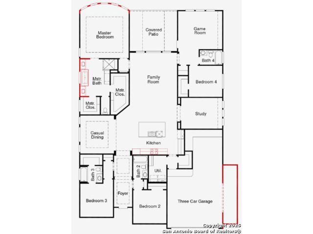 This spacious one-story floor plan with a 3-car garage and 5' storage space is just what you have been searching for! An elegant 8' front door opens to a grand foyer with soaring ceilings and luxury vinyl plank floors that lead to a large great room, an open-concept kitchen, and an oversized dining space. The family chef will enjoy the gourmet kitchen, with its built-in stainless steel appliances, gas cooktop, and quartz countertops. A private study offers a dedicated space for working from home. The primary suite features a bow window in the bedroom, a free-standing tub and separate shower in the bathroom, and two large walk-in closets. The game room provides a flexible space for the whole family to play or relax. A first-floor secondary bedroom with an ensuite bathroom is perfect for guests. Don't miss out on this gorgeous home - schedule your tour today!