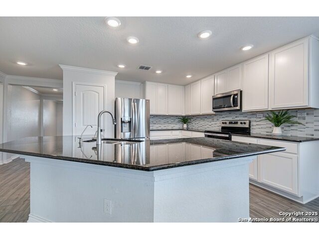 ***Your Dream Home became more affordable! The motivated Seller is giving Seller Concession to buy-down interest rates and help in the closing!*** This Gorgeous One-Story Home that sits in a Corner lot is located at the heart of Northwest San Antonio. Step inside to a beautiful Foyer with long gracious steps that leads to the well Upgraded Home with beautiful features including Open Space Concept, Sprawling Kitchen Island, 42" Kitchen Cabinets, Spacious Living Room, upgraded 3 Full Bathrooms, Owned Top of the Line Security System with home automation, an enhanced garage and fancy stone accents on the outside. The kitchen flows naturally into a spacious living room, which is perfect for relaxing and entertaining. Next to the living room is the lavish primary suite, which is a true sanctuary. The master bath and walk in shower is huge and luxurious, with plenty of space and a walk-in closet. Each of the other bedrooms is also generously sized and has upgraded carpets for comfort and style. Located in a highly sought-after subdivision "Preserve at Culebra" in Alamo Ranch which close to major highways, JSAB Air Force Bases, La Cantera, Seaworld, Six-Flags, Costco, HEB and Hospital. This gorgeous home is ready for its next Owner - and it could be yours! Come and see this beauty and be the next owner!