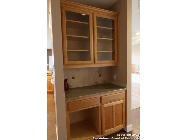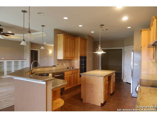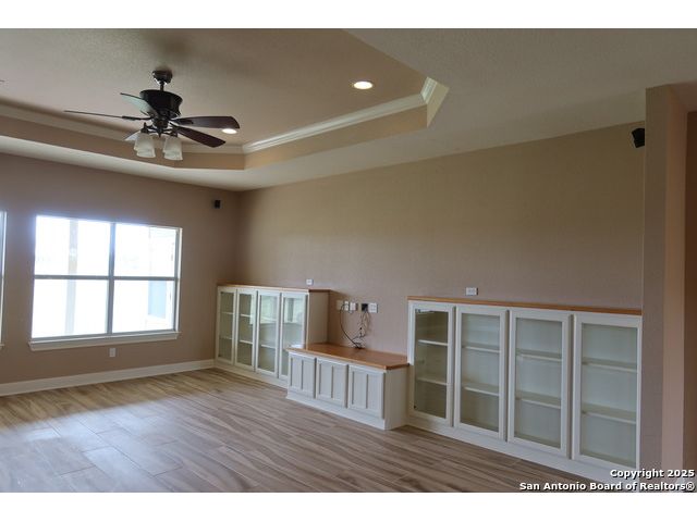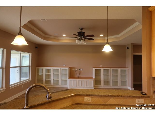 Texas Hill Country home on 14th Green at the Flying L Ranch in Bandera TX. Spacious home with all bedrooms downstairs with loft and bathroom upstairs for a game room area or 4th bedroom or media room. Custom cabinets in the office for working at home. Open concept kitchen bar, island, breakfast area open to living area for entertaining, 2 eating areas. Walk in pantry, wet bar off dining room. Master bedroom split, double vanity, tub show separate, huge walk in closet, door to covered back patio. The 3rd bedroom has a Florida room with window unit perfect spot to read a book or watch the exotic game across the fairway at a private ranch. This is a private location at the Flying L Ranch. Schedule your showing today.