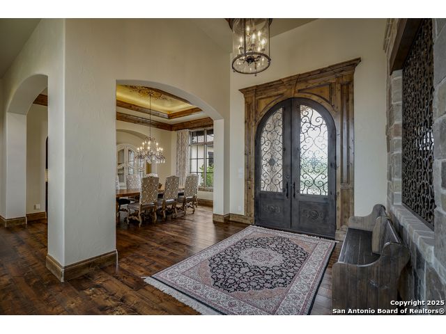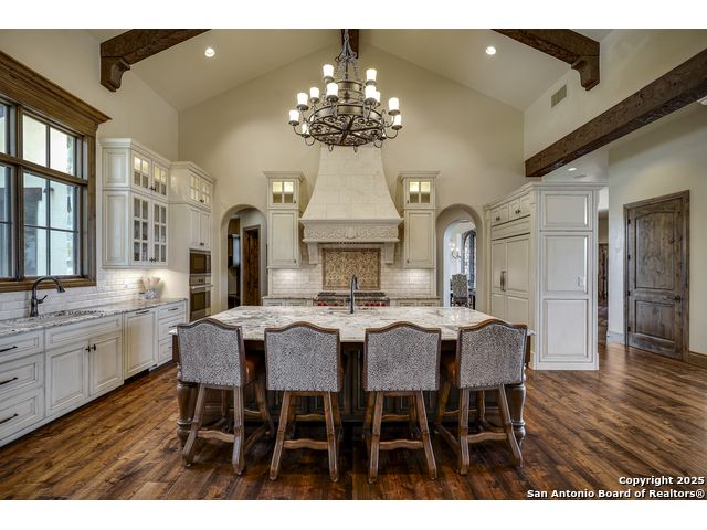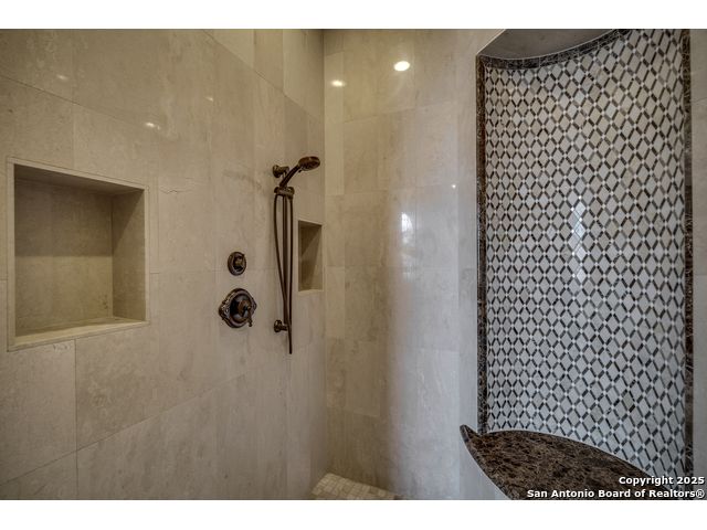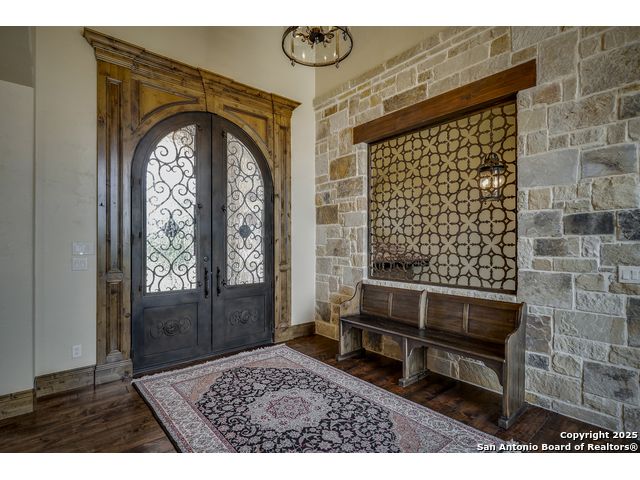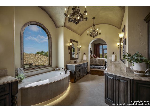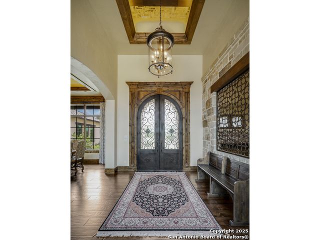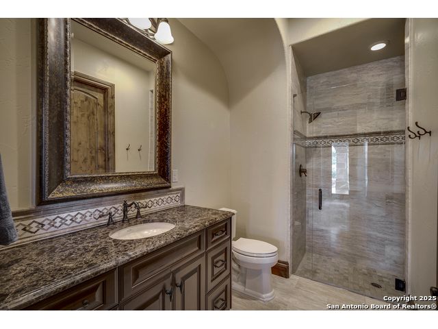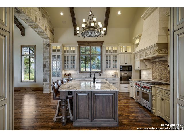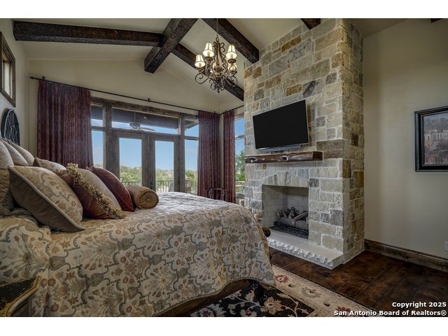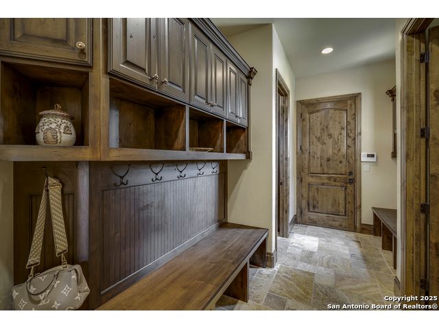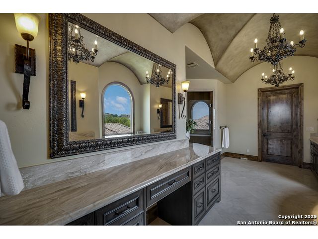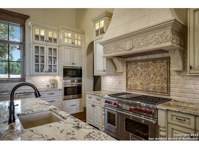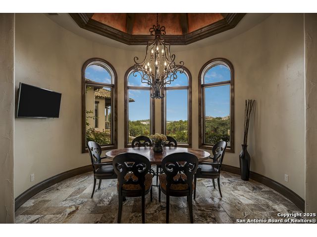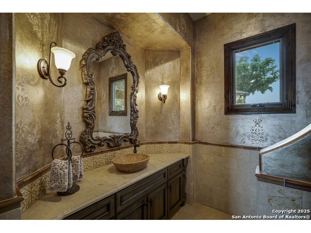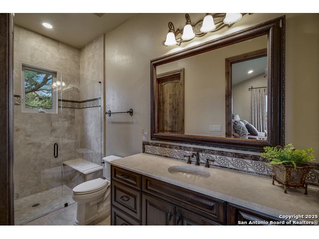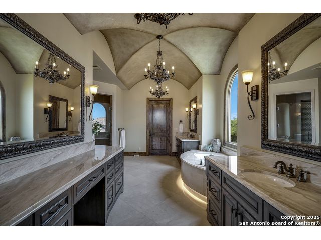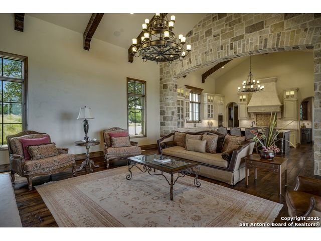 *This home has a FULL MASTER GOLF MEMBERSHIP AVAILABLE* Welcome to this one-of-a-kind custom-built Stadler home, nestled in the coveted Clubs Village section of the well-known Cordillera Ranch neighborhood. Perfectly positioned on a beautifully landscaped 1.01-acre lot, this exceptional residence backs to the 6th tee box of the Signature Jack Nicklaus Golf Course-offering serene, expansive Hill Country views and an unmatched lifestyle. With 5,940 square feet of meticulously crafted living space, this home seamlessly blends timeless architecture with luxurious modern amenities. Upon entry, you are greeted by soaring custom beamed ceilings and a flood of natural light pouring in through expansive windows, creating a warm and inviting ambiance throughout the home. To your right, a formal dining room sets the stage for elegant gatherings, seamlessly connecting to the open-concept living area. The gourmet island kitchen is a chef's dream, featuring abundant custom cabinetry, granite countertops, gas cooking, sub-zero refrigerator, 2 Bosch dishwashers, three Wolf ovens, double sinks, a spacious walk-in pantry, and an adjacent wet bar with built-in cabinetry. A charming breakfast room offers serene views of the backyard, perfect for morning coffee. The main living room boasts a floor-to-ceiling stone gas fireplace flanked by custom built-ins, leading into an expansive game room with a floating ceiling and a stylish bar area. Off the game room is a private guest suite with a full bathroom-ideal for overnight visitors. On the opposite wing, a dedicated office with built-in shelving provides the perfect work-from-home setup. The luxurious primary suite features private access to a covered patio, a striking stone fireplace, and a spa-like bathroom with dual vanities, a third prep vanity, garden tub, glass walk-in shower, and an oversized walk-in closet. Additional main-level highlights include two half baths, a mudroom, and a spacious laundry room. A temperature-controlled wine cellar is tucked halfway down the stairs, leading to the lower level where a second living room, and two additional bedrooms with their own ensuite bathroom, each offering a private covered patio. A large 24x14 ft storage room provides extensive storage solutions. Step outside to your private outdoor oasis, complete with a covered patio, full outdoor kitchen-including a gas grill, beverage fridge, and sink-ample seating space, and a cozy gas fireplace. Take in breathtaking Hill Country views while relaxing in the infinity-edge pool with attached spa and soothing water features. This remarkable home also includes an oversized 3 1/2-car garage, central vacuum system, and numerous thoughtful upgrades-offering both convenience and elegance in one of the Hill Country's most prestigious communities.