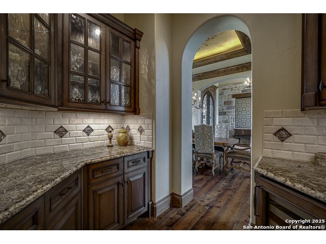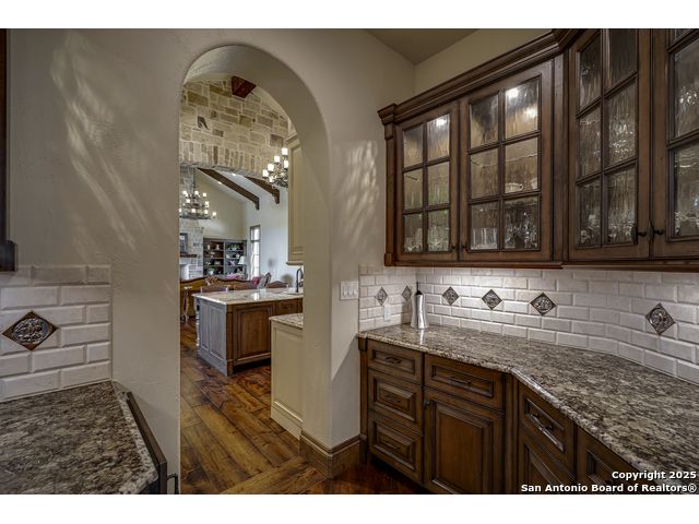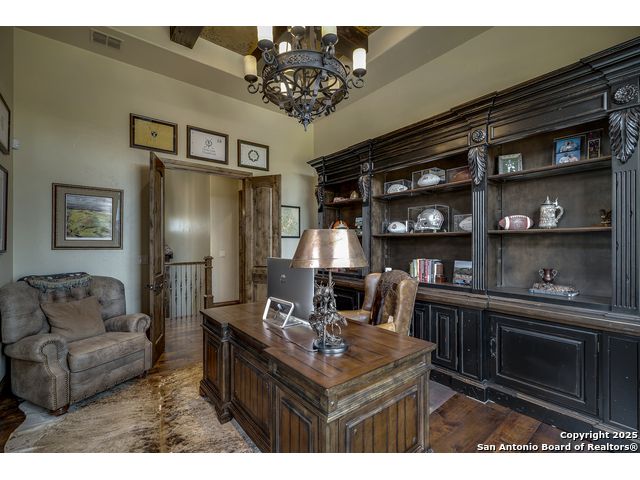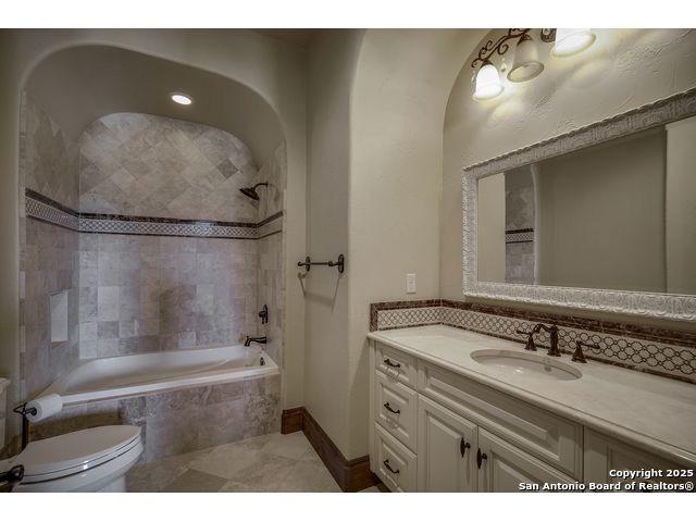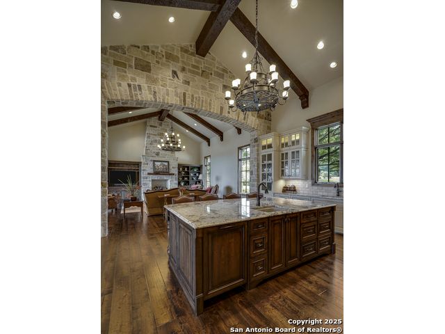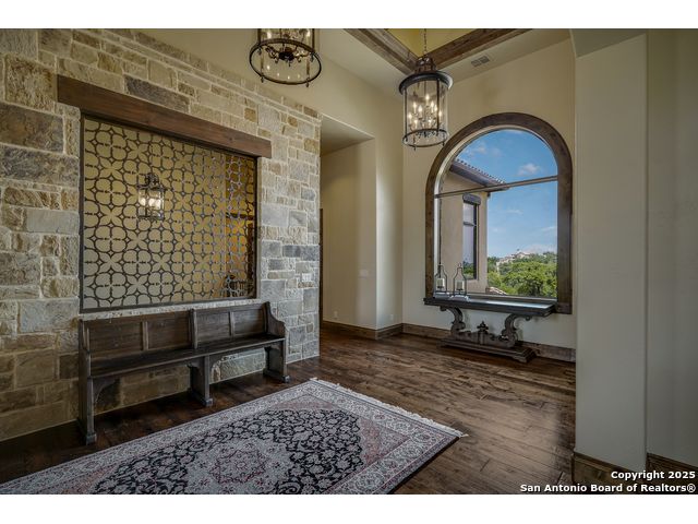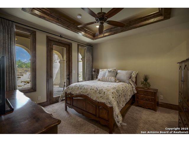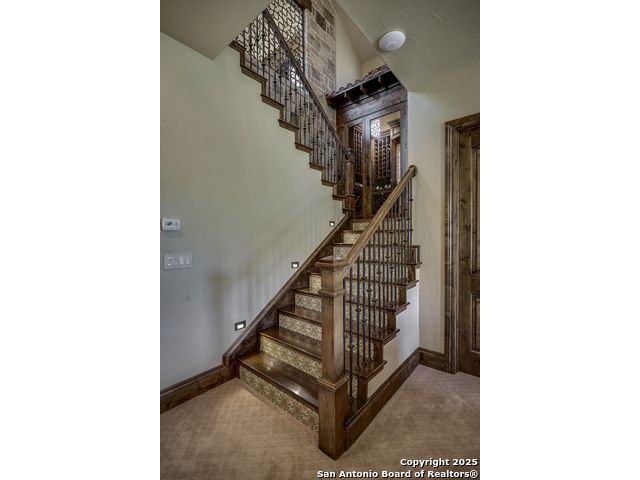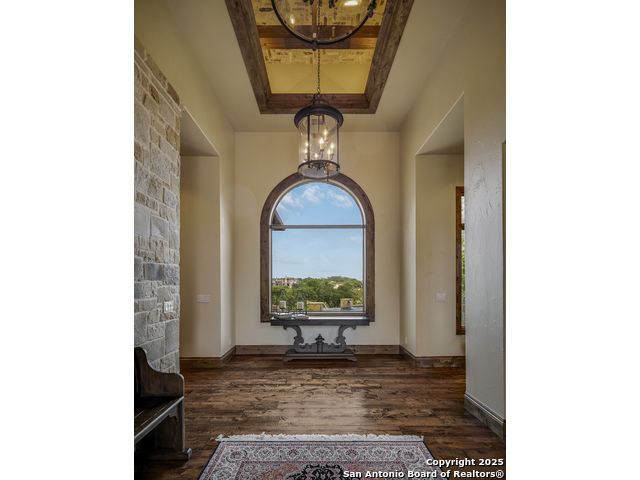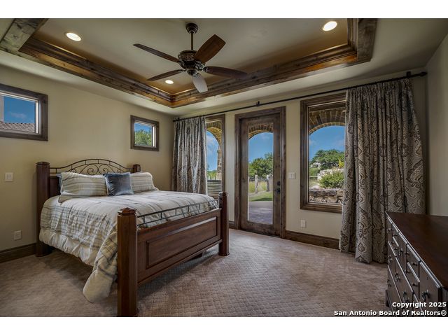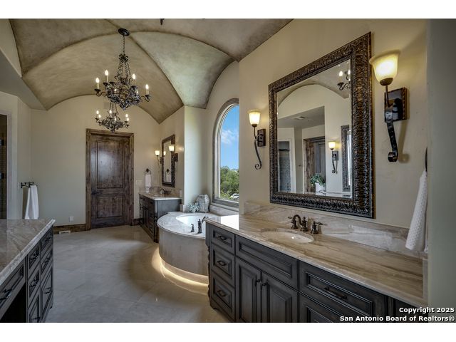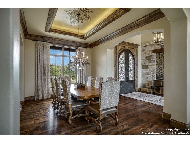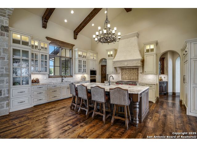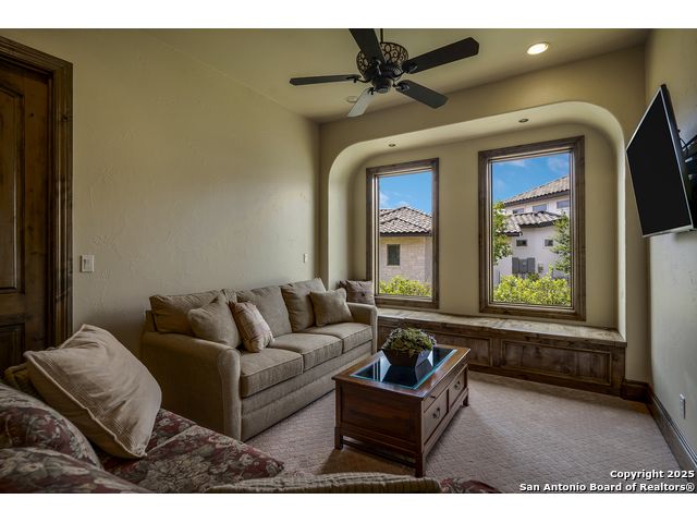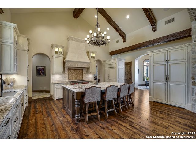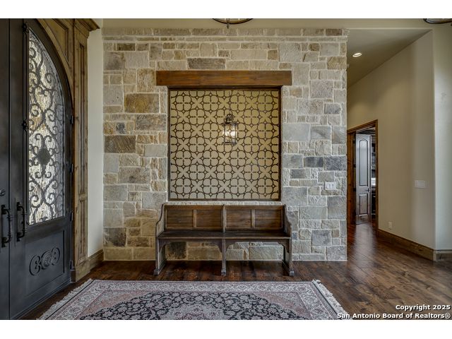 *This home has a FULL MASTER GOLF MEMBERSHIP AVAILABLE* Welcome to this one-of-a-kind custom-built Stadler home, nestled in the coveted Clubs Village section of the well-known Cordillera Ranch neighborhood. Perfectly positioned on a beautifully landscaped 1.01-acre lot, this exceptional residence backs to the 6th tee box of the Signature Jack Nicklaus Golf Course-offering serene, expansive Hill Country views and an unmatched lifestyle. With 5,940 square feet of meticulously crafted living space, this home seamlessly blends timeless architecture with luxurious modern amenities. Upon entry, you are greeted by soaring custom beamed ceilings and a flood of natural light pouring in through expansive windows, creating a warm and inviting ambiance throughout the home. To your right, a formal dining room sets the stage for elegant gatherings, seamlessly connecting to the open-concept living area. The gourmet island kitchen is a chef's dream, featuring abundant custom cabinetry, granite countertops, gas cooking, sub-zero refrigerator, 2 Bosch dishwashers, three Wolf ovens, double sinks, a spacious walk-in pantry, and an adjacent wet bar with built-in cabinetry. A charming breakfast room offers serene views of the backyard, perfect for morning coffee. The main living room boasts a floor-to-ceiling stone gas fireplace flanked by custom built-ins, leading into an expansive game room with a floating ceiling and a stylish bar area. Off the game room is a private guest suite with a full bathroom-ideal for overnight visitors. On the opposite wing, a dedicated office with built-in shelving provides the perfect work-from-home setup. The luxurious primary suite features private access to a covered patio, a striking stone fireplace, and a spa-like bathroom with dual vanities, a third prep vanity, garden tub, glass walk-in shower, and an oversized walk-in closet. Additional main-level highlights include two half baths, a mudroom, and a spacious laundry room. A temperature-controlled wine cellar is tucked halfway down the stairs, leading to the lower level where a second living room, and two additional bedrooms with their own ensuite bathroom, each offering a private covered patio. A large 24x14 ft storage room provides extensive storage solutions. Step outside to your private outdoor oasis, complete with a covered patio, full outdoor kitchen-including a gas grill, beverage fridge, and sink-ample seating space, and a cozy gas fireplace. Take in breathtaking Hill Country views while relaxing in the infinity-edge pool with attached spa and soothing water features. This remarkable home also includes an oversized 3 1/2-car garage, central vacuum system, and numerous thoughtful upgrades-offering both convenience and elegance in one of the Hill Country's most prestigious communities.