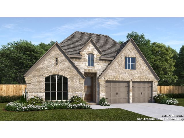 Extended entry with 13-foot ceiling leads to open kitchen, dining area and family room. Kitchen offers generous counter space, corner walk-in pantry, two wall ovens, a 5-burner gas cooktop and inviting island with built-in seating space. Dining area flows into family room with a wood mantel fireplace and wall of windows. Game room with French doors just across from kitchen. Primary suite includes double-door entry to primary bath with dual vanities, garden tub, separate glass-enclosed shower and two large walk-in closets. Secondary bedrooms feature walk-in closets. Extended covered backyard patio. Mud room off two-car garage.