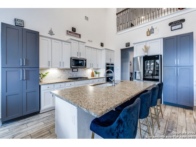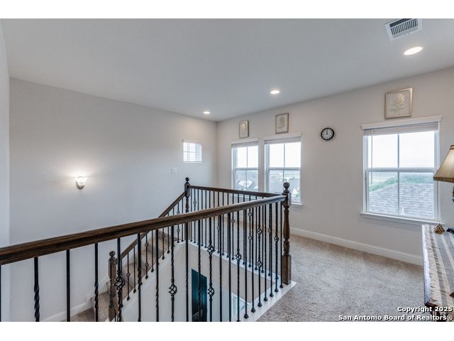 Come check out this beauty on the hill. As you approach the front door, turn around and enjoy a gorgeous country view. As you enter the house you will see a bright entryway with tall ceilings that welcome you into this open concept entertainers' home. This leads to an area where one space flows freely into the next. The kitchen has a large island, double ovens and a gas cook top, making it a joy to prepare meals. It is open to the dining room and family room, creating the perfect space for gatherings. The family room boasts 12-foot ceilings and has large windows with lots of natural light. The covered patio is an easy extension of the living space that allows for people to sit and look out on a yard that has plenty of space for a pool. Enjoy dining alfresco while grilling with the built in gas line. A downstairs flex space that is currently being used as an office could be a second dining area, home gym or craft room. The 3 car garage is a must! Spray foam insulation makes this home energy efficient certified. This home was very pampered and manicured by the current owner with lots of love and pride..