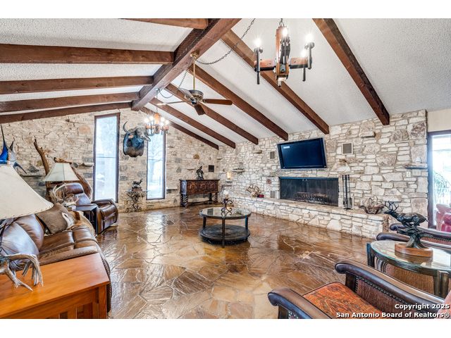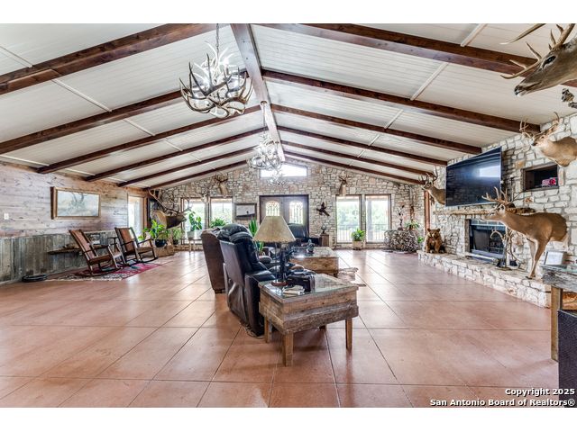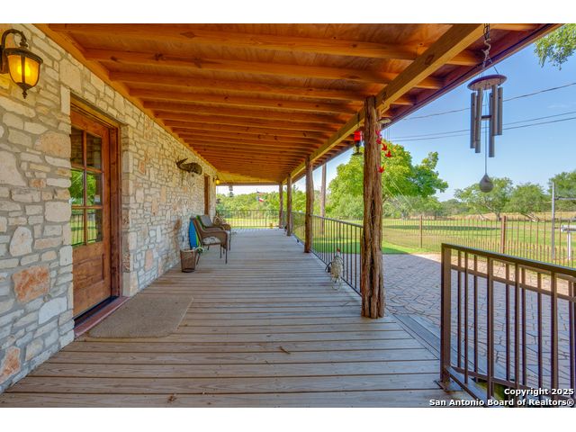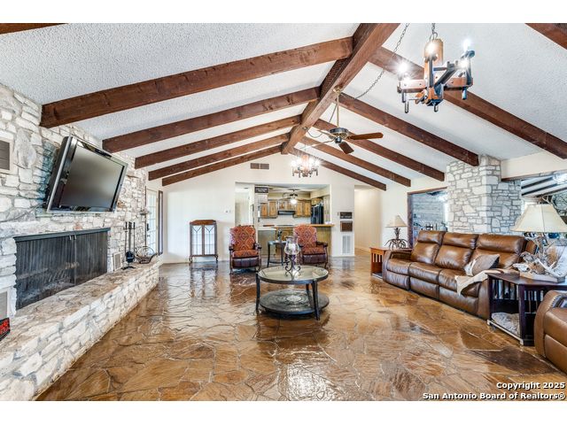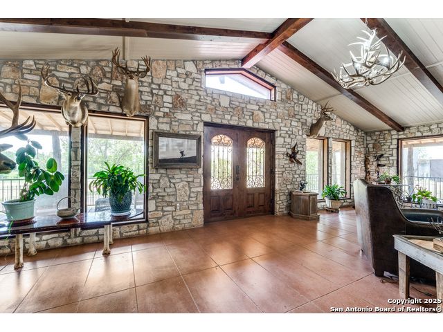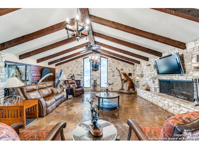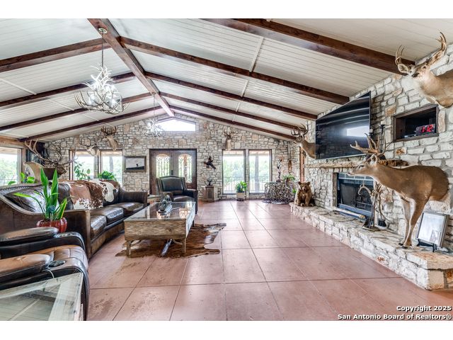 Rustic Retreat! Hunters Paradise! This is the place! Just minutes from San Antonio, this breathtaking 28+/- acre high-fenced property delivers luxury, utility, and serious wildlife appeal! Settled within this peaceful retreat is a 3,963 sq ft Rustic ranch-style home with a wraparound porch, pool, and wide-open views! Home features 3 bedrooms, 3 baths, office, 2 living areas, 3 large fireplaces, unique stone floors, and a safe room! Property Highlights include: High fenced, White-tailed deer, Deer/livestock pens, Large well-fed stock tank with pier, 2nd stock tank, Two water wells, Coastal hay field, Three-stall horse/livestock barn with covered equipment storage, Open Barn with additional stalls, Outbuilding with walk-in cooler, walk-in freezer, and stainless steel countertops, Storage building, 2 car carport, Fenced yard. Every inch is built for comfort, function, and outdoor living. If you're after a private escape with room to breathe, this place delivers! Enjoy a variety of wildlife within this high-fenced property built for those who value privacy, space, and a ranch setup with all the amenities. It offers the best of country living just minutes from San Antonio, making it perfect for a weekend getaway, full-time residence, or an income-producing ranch operation. Peaceful, private, and move-in ready! * Adjoining property is also available, offering the potential for expansion, multi-family living, or an even corporate retreat.