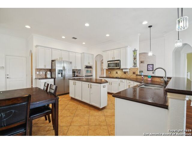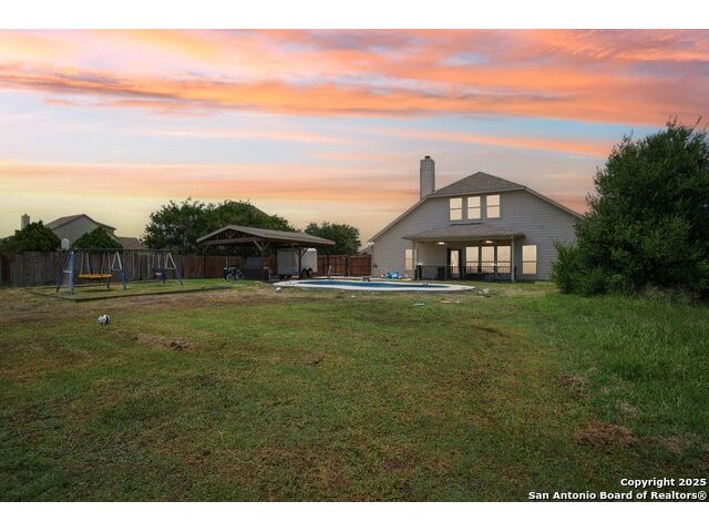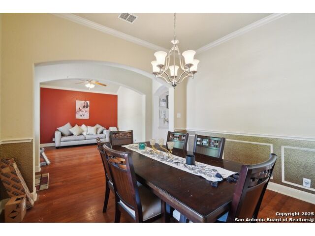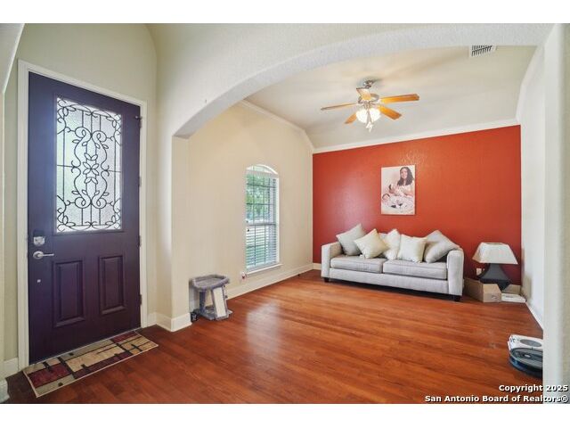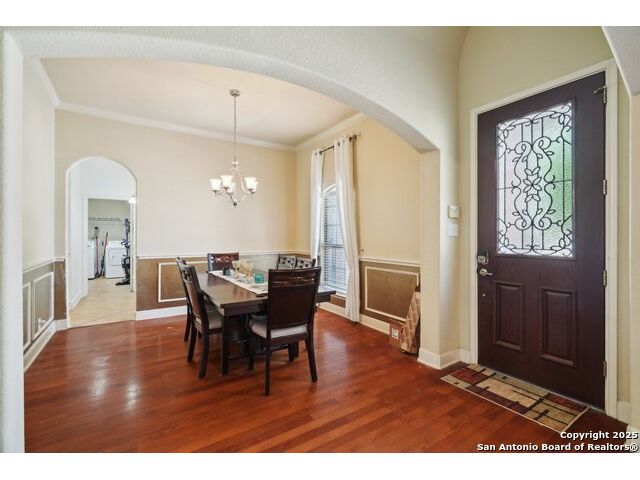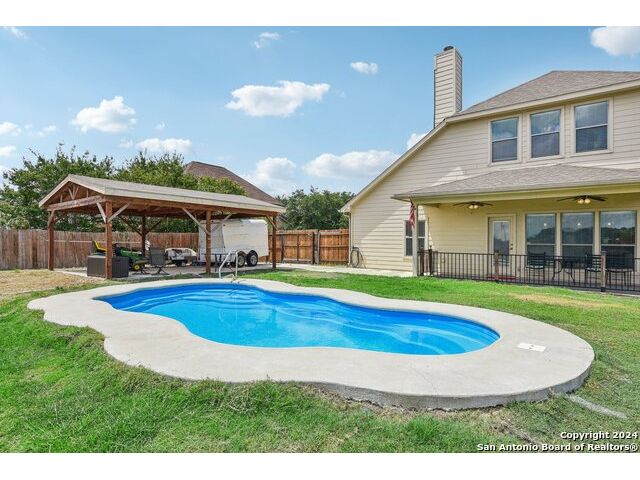 Welcome to 7027 Laura Heights, a beautifully maintained home in the sought-after Laura Heights Estates community! Nestled on a spacious 1/2-acre lot just 15 miles from Downtown San Antonio and under 7 miles from Randolph AFB, this home blends comfort, space, and convenience. Inside, you're greeted by soaring 10-foot ceilings, rich hardwood floors, and elegant crown molding. The thoughtfully designed floorplan features three versatile living areas, a formal dining room, and a chef-inspired kitchen with granite countertops, 42" cabinets, and an oversized island ideal for entertaining. The grand primary suite is a true retreat-tucked away for privacy, it boasts generous space and a luxurious en-suite bath complete with a soaking tub, walk-in shower, and dual vanities. On the opposite side of the main level, you'll find the secondary bedrooms-perfectly placed for privacy and functionality-while an additional bedroom and full bath upstairs offer flexibility for guests or extended family. Upstairs also features a large game room and a spacious flex area, ideal for a home office, gym, or media room. Step outside to a vast backyard designed for entertaining, with an inground pool, 12x16 storage shed, and a covered flex space ideal for cookouts and outdoor gatherings. The circular driveway adds both convenience and curb appeal. Located in East Central ISD and move-in ready just in time for the new school year, this home is the perfect blend of space, luxury, and location.