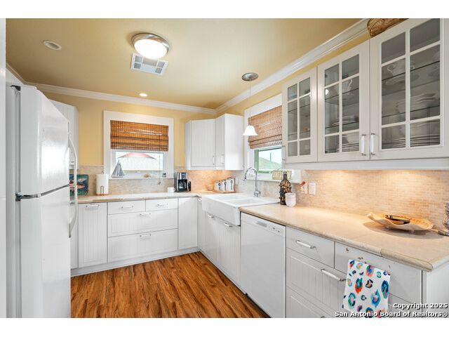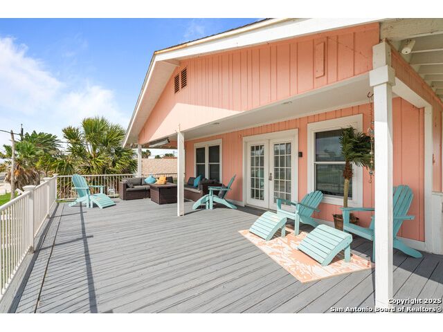 Quaint Coastal Cottage right off Aransas Bay close to The Rockport Blue Wave Beach, Downtown, Shopping, Dining & The Arts. Located in Highly Desired South Rockport w/Access to World Class Fishing, Kayak Launch, Harbor & Marina & Sporting Trails. This Dreamsicle on the Coast will Surely Satisfy Your Seaside Craving for Fun in the Sun! 3BR/2BA with Separate Sleeping Quarters Allows for Many to Enjoy Vacationing or Living @ the Sea. Turn-Key, Ready to Welcome You & Your Guests. Open Concept Kitchen w/Neutral Stone Backsplash & Double Drain Board Apron Farm Sink, Dining & Inviting Living. No Fuss Laminate & Tile, Bamboo Blinds Throughout. Huge Upstairs Primary Suite & Guest Bedroom. Downstairs Studio w/ Large Bedroom/Living Combo Outfitted with Full/Queen Bunk & Futon. Separate Full Bath & Nice Sized Shower. Mini-Kitchen Downstairs w/Retro Style Refrigerator, Coffee Set Up & More!! Two Car Garage & Plenty of Space for Toys. Washer & Dryer Included. Rest & Relax on the Massive Upper Deck or Grab A Chaise Lounge for Soaking in the Rays. BBQ Patio w/Grill. Plenty of Room to Roam in the Fully Fenced Backyard. Mature Palm Tree Greets You Upon Arrival. Short Term Rental Allowed. Get Ready, Get Set & Go For It!!!