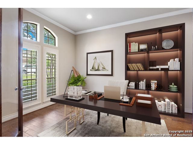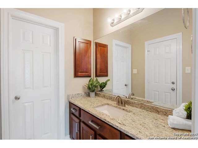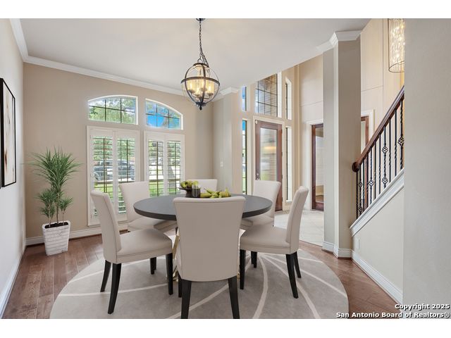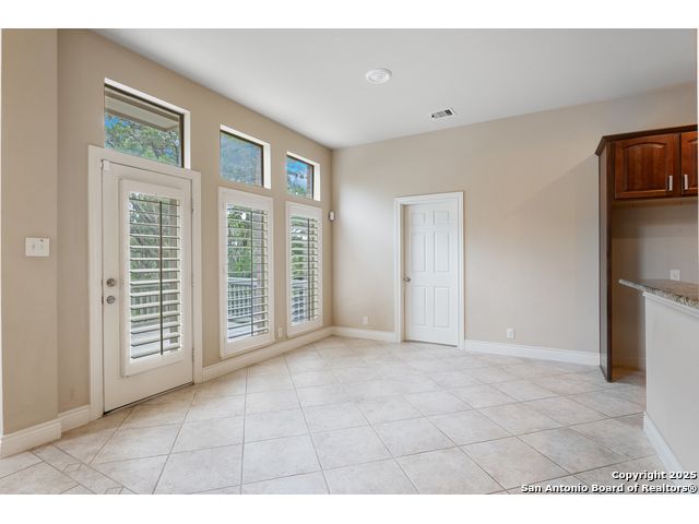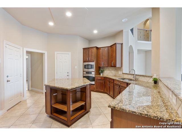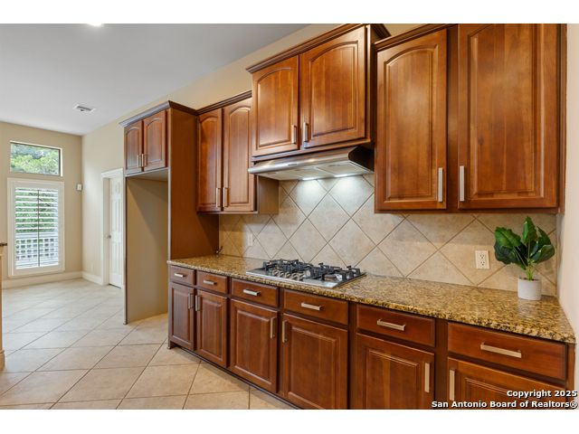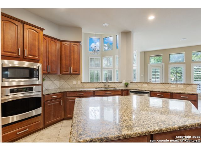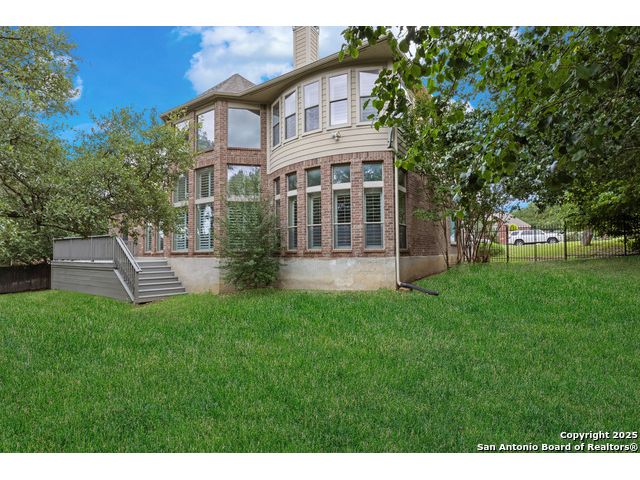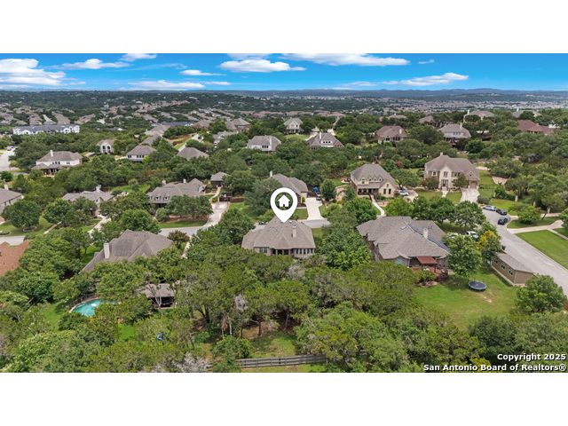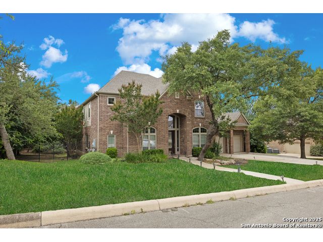 Tucked beneath mature trees and timeless curb appeal, this beautifully maintained two-story home in Limestone Ranch offers the perfect blend of space, comfort, and upgrades. Situated on a large lot in a sought-after gated community, the property boasts soaring ceilings, plantation shutters, and elegant architectural details throughout. The light-filled living room features a dramatic wall of windows and a cozy fireplace, flowing seamlessly into a well-equipped kitchen with granite counters, double ovens, and a center island. The spacious primary suite is a true retreat, complete with bay windows and a spa-like bath with dual vanities, soaking tub, and separate shower. A dedicated office and formal dining room add functionality, while the upstairs loft provides additional living flexibility. Step outside to enjoy a peaceful backyard with an extended deck, ideal for relaxing or entertaining. Zoned to top-rated Boerne ISD and just minutes from shopping, dining, and major highways-this home has it all!