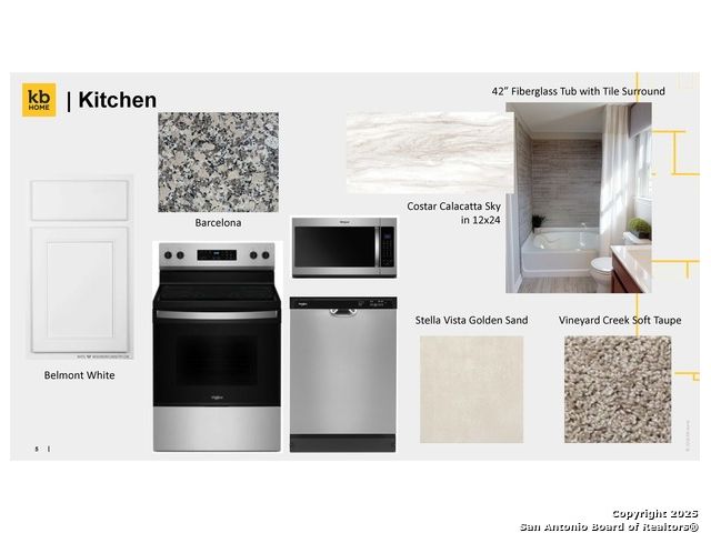 Step into comfort and style with 9-ft. first floor ceilings that enhance the spacious feel of this inviting home. The kitchen shines with Whirlpool stainless steel appliances, Woodmont Belmont 42-in. upper cabinets, granite countertops in Barcelona, and an extended breakfast bar-perfect for casual dining. The primary bath offers upgraded cabinets and a 42-in. garden tub/shower with elegant Daltile tile surround. Design details include a Carrara style entry door, Kwikset Polo knob interior hardware, and Stella Vista ceramic tile flooring in the bathrooms, kitchen, and great room. Enjoy added peace of mind with a wireless security system, plus an automatic sprinkler system and fully sodded yard.