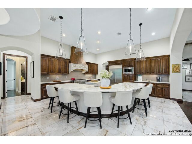 NICHE Properties is please to introduce the epitome of luxury living to the marketplace. This glorious one level 5018+/- square foot exquisite estate is located in highly desirable guarded and gated Anaqua Springs. It has been recently remodeled to top tier perfection elevating this already awesome offering with breathtaking new soft contemporary and perfectly selected Ralph Lauren and RH lighting, fabulous new marble and wood flooring, spacious open floor plan. You will be captivated by this unique epicurean offering curated with such perfection that it rivals any others. Situated on a 2.2+ acre private, lushly landscaped and verdant setting, every detail addressed to perfection. From the HIGHLY IMPRESSIVE 3000+ bottle temperature controlled wine room, the inspired Chef's kitchen options, to the glistening pool/spa and outdoor commercial kitchen with dining and living room, the attention to custom details are truly everything a discerning buyer could desire. Experience this luxe property personally to truly understand its elegant and bespoke style with a most welcoming vibe.
