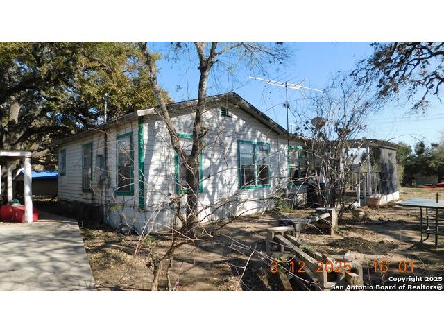 Come check out these 3 bedrooms with 1 bath home on a corner lot across street from city property along the Atascosa River. Jogging/walk trail along river side. Pavilion with picnic tables nearby. Large Live Oak trees, nice size storage shed, two car carport, and chicken coop. Home could use some TLC but could be a good investment property. Yes, the property is in auction. Please put the below link in the MLS. listed under Confidential Remarks. Auction Dates: