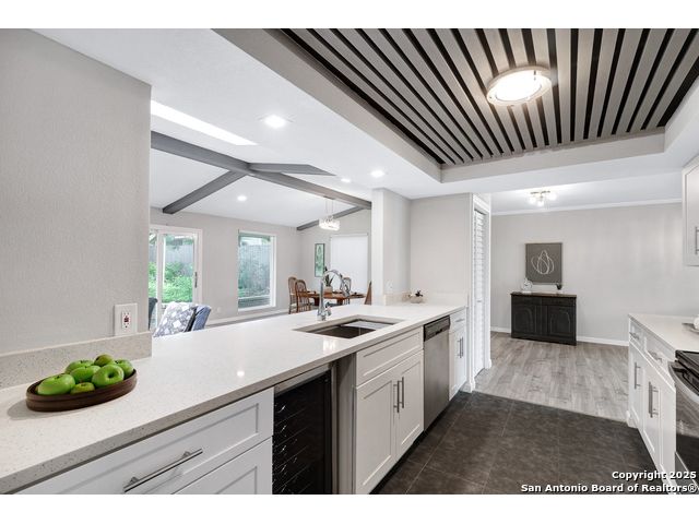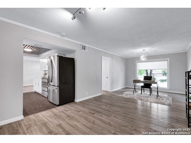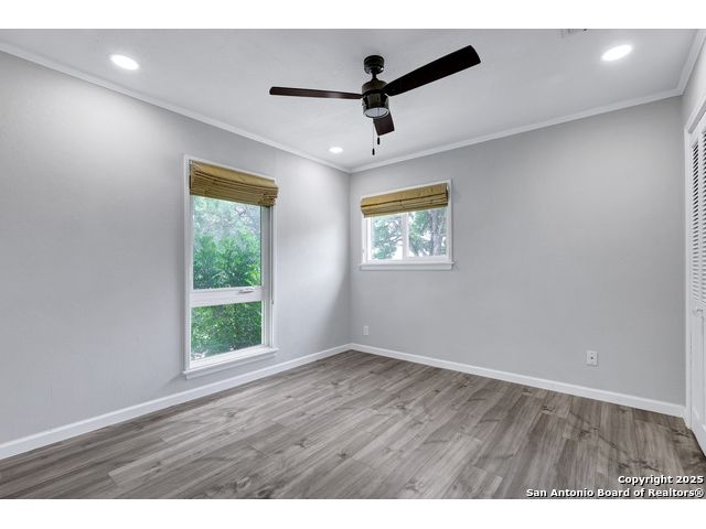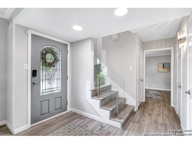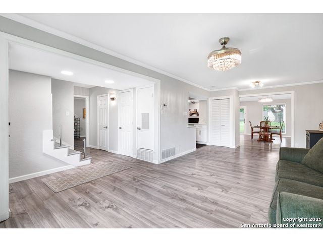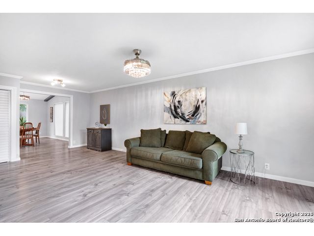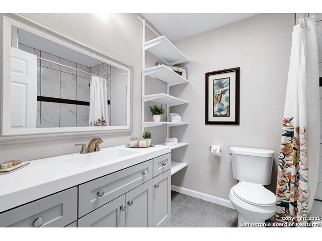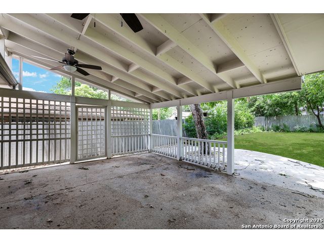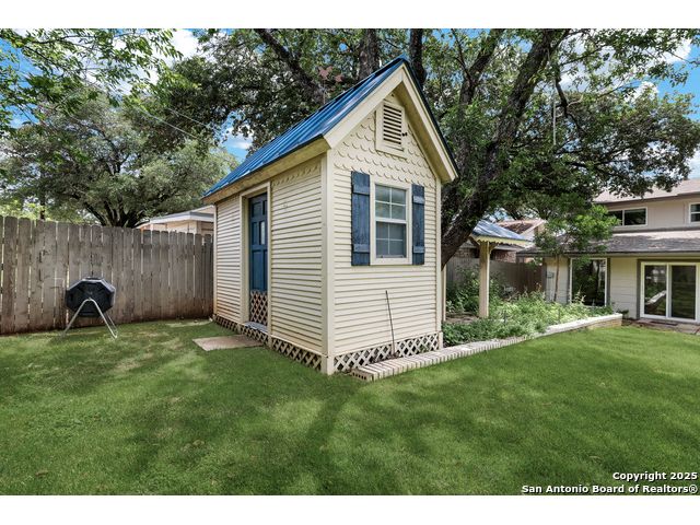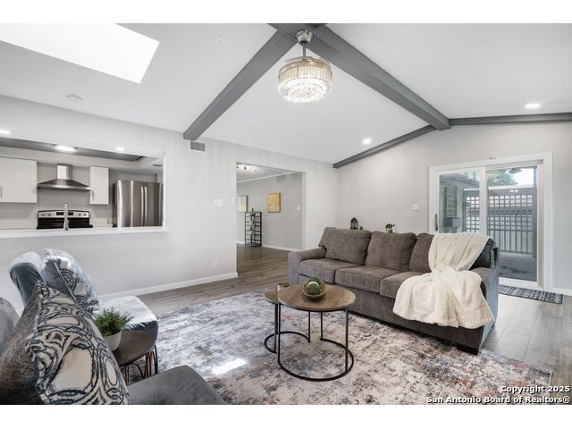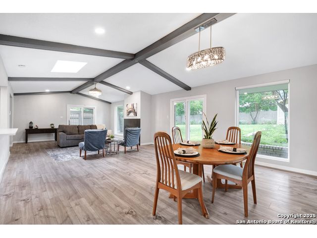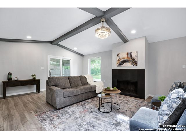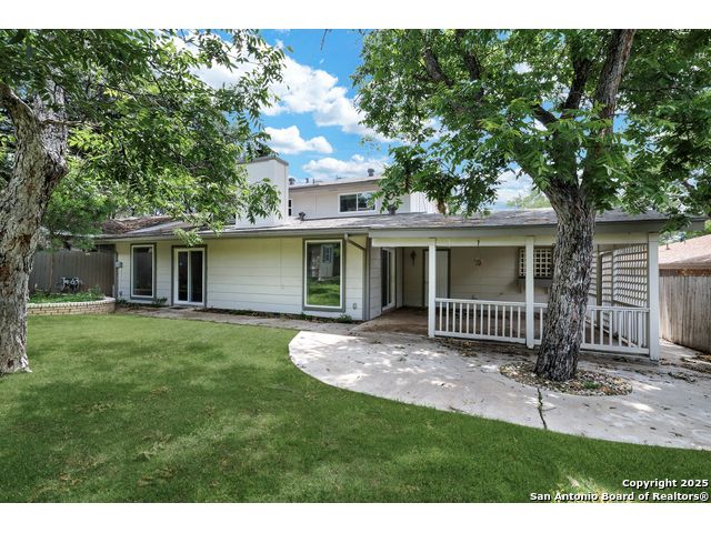 Seller will offer Buyer Closing Fees with an Acceptable Offer. Welcome to this stunning, fully updated home that's been exceptionally well cared for! The lot size at .20 of an acre allows for you to have ample outdoor space. Featuring Brand New Pella windows throughout and no carpet anywhere, this home offers both style and comfort with thoughtful upgrades in every room. Step inside to an open floor plan with three spacious living areas, including a main family room with soaring ceilings, striking wood beams, and a cozy fireplace. Enjoy abundant natural light streaming through the brand-new windows, creating a bright and inviting atmosphere. The primary suite is a true retreat, complete with an en-suite bath, one walk-in closet, and two additional closets for optimal storage. Refrigerator, Washer and Dryer remain with the home! Step outside to a lush, landscaped backyard featuring a covered patio for relaxing or entertaining and a charming shed for extra storage. Conveniently located near the Medical Center, USAA, and UTSA, this home offers both convenience and comfort. Room sizes are approximate. Don't miss this move-in-ready gem-schedule your showing today!