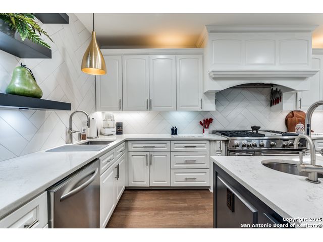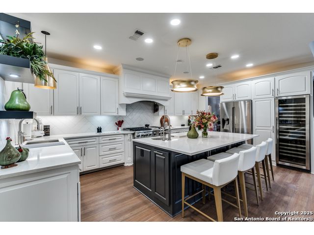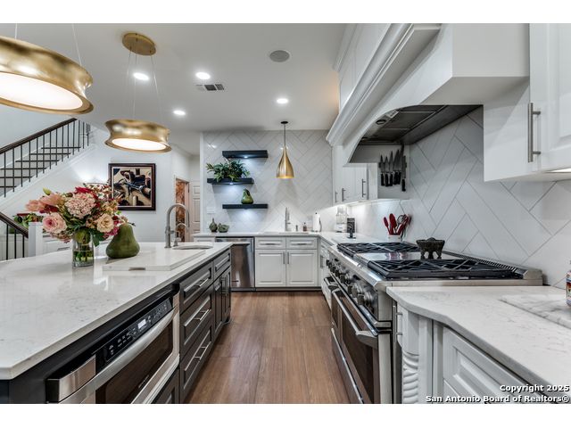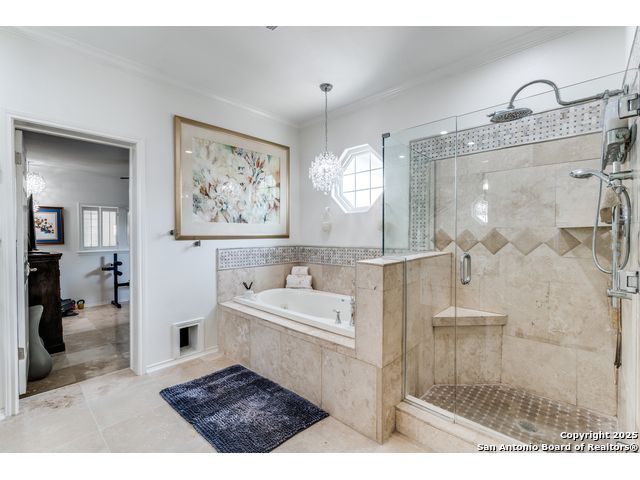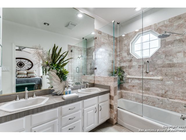 RARE DUAL-LOT LUXURY TOWNHOME IN ST. CHARLES - TRULY ONE OF A KIND! Discover an exceptional residence where two adjoining townhomes have been masterfully combined into one expansive, custom-upgraded showpiece inside the coveted gated St. Charles community. This unique dual-lot property features two full primary suites, each with oversized walk-in closets, in-room coffee stations, and spa-inspired baths for a true resort experience. The chef's kitchen impresses with quartz countertops, a baker's island, 48" gas range, and an upgraded butler's pantry-perfect for hosting or elevating everyday living. Multiple living areas, a flexible office/game room, designer lighting, wet bars, and dual staircases add to the home's grand scale and sophisticated style. Enjoy dual garages (2-4 cars) with epoxy flooring, a private lighted courtyard, energy-efficient windows, and a new triple-pane patio door. Ideally located just minutes from the Medical Center, The Quarry, The Pearl, premium dining, shopping, and the airport. This extraordinary St. Charles opportunity blends luxury, space, and convenience like no other. HOA reflects two combined units.