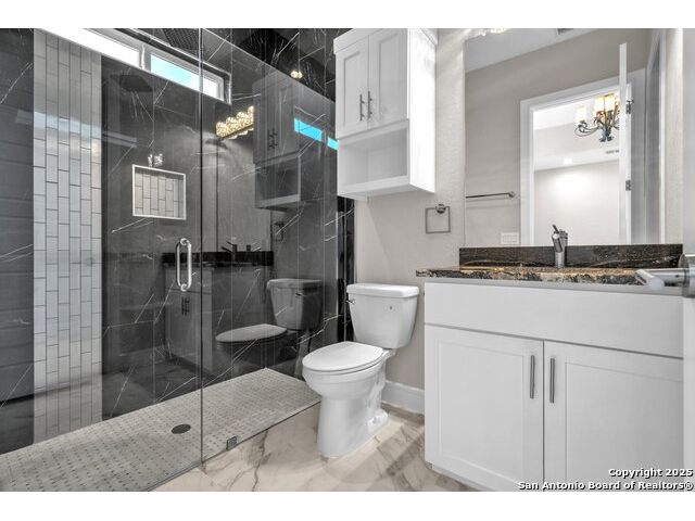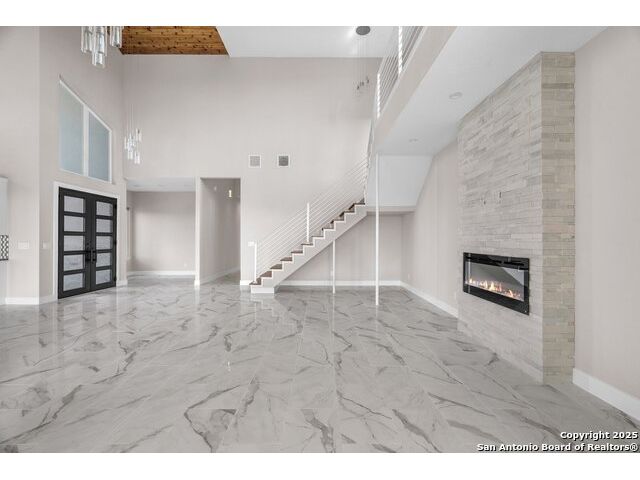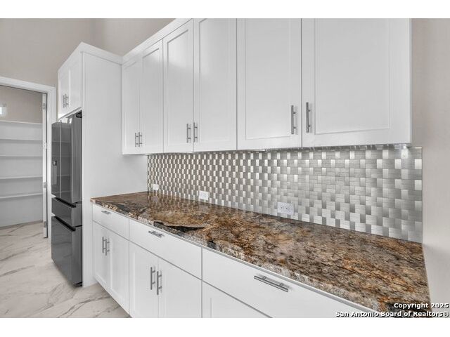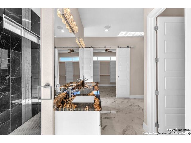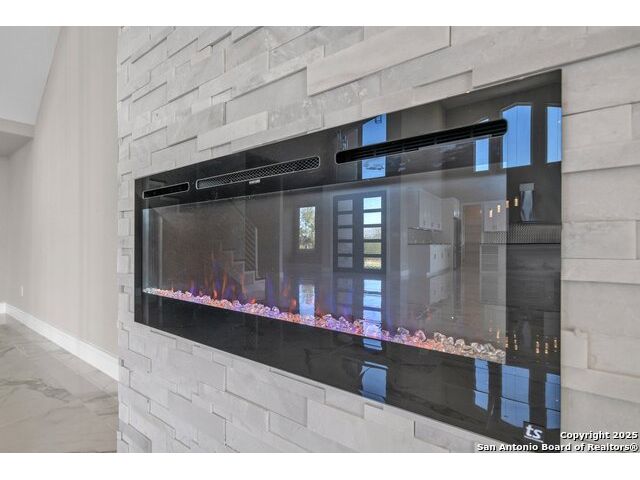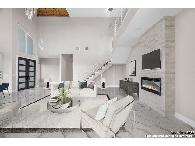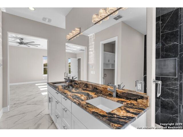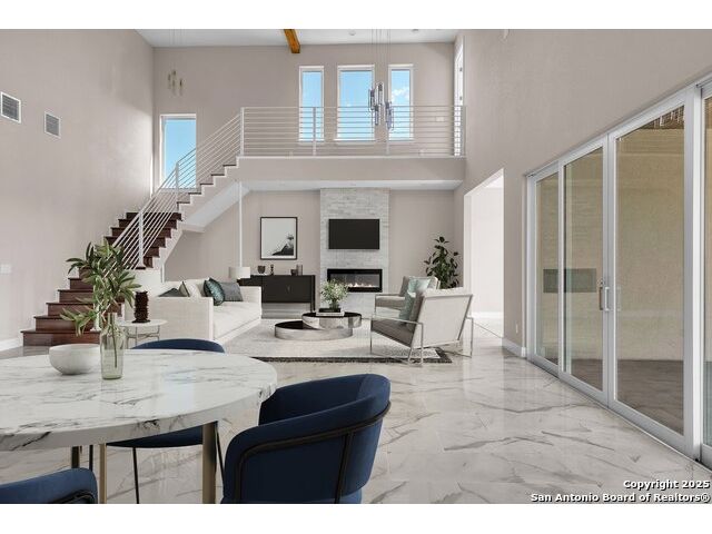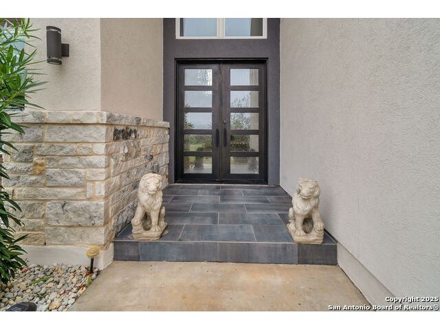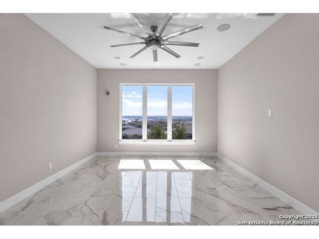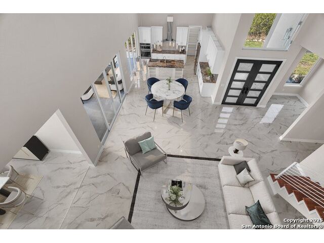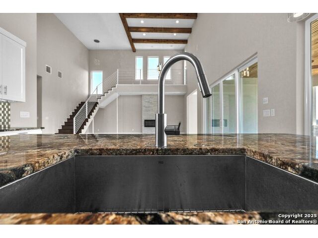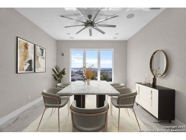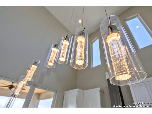 Welcome to this striking custom-built estate perched atop 2.16 acres in the prestigious Mystic Shores community of Spring Branch-offering commanding views of Canyon Lake and over 4,200 square feet of sophisticated living. Built in 2020 and gently lived in by the builder himself, this home blends modern elegance with thoughtful craftsmanship throughout. Step inside through solid metal and glass doors into soaring 22-foot ceilings, porcelain floors that flow seamlessly from room to room, and a surround sound system wired throughout the home-including the garage and outdoor patio-for an immersive audio experience. This 4-bedroom, 3.5-bath masterpiece features two primary suites, top-of-the-line cabinetry, stunning granite countertops, and a chef's kitchen ready to impress. A 2-car garage is connected by a breezeway to a separate 4-car garage-perfect for car collectors, hobbyists, or future casita conversion. Set on a beautifully elevated 2.16-acre lot, you'll enjoy unmatched privacy, panoramic lake views, and ample space to create your outdoor dream retreat. Plus, Mystic Shores offers resort-style amenities including lakeside parks, a community pool, tennis and sports courts, and playgrounds. This is more than a home-it's a rare opportunity to live elevated, both in lifestyle and location.