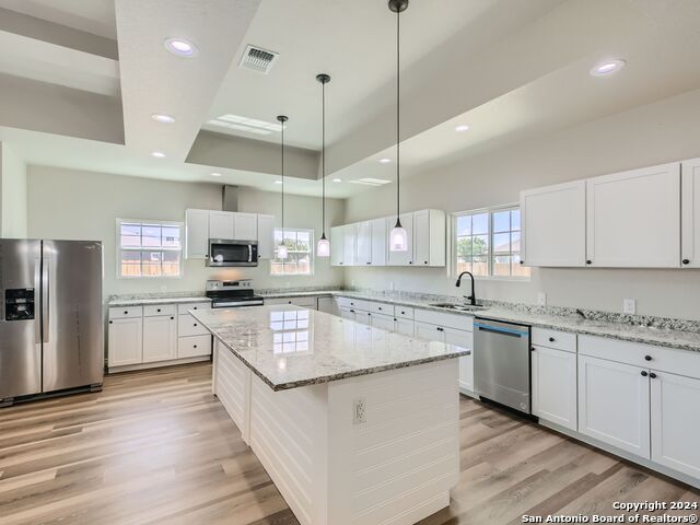 This stunning custom-built 4-bedroom, 3.5-bathroom home sits on a spacious 0.25-acre lot, offering a perfect blend of modern style and functionality. Designed with an open-concept layout, the home is ideal for both entertaining and everyday living. High ceilings enhance the airy, open feel, while elegant granite countertops add a luxurious touch to the kitchen and bathrooms. The gourmet kitchen, which comes complete with all appliances, serves as the heart of the home. With high-end finishes and ample works