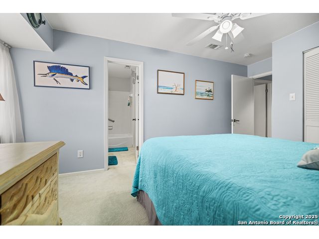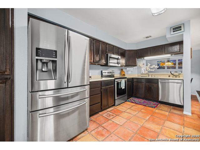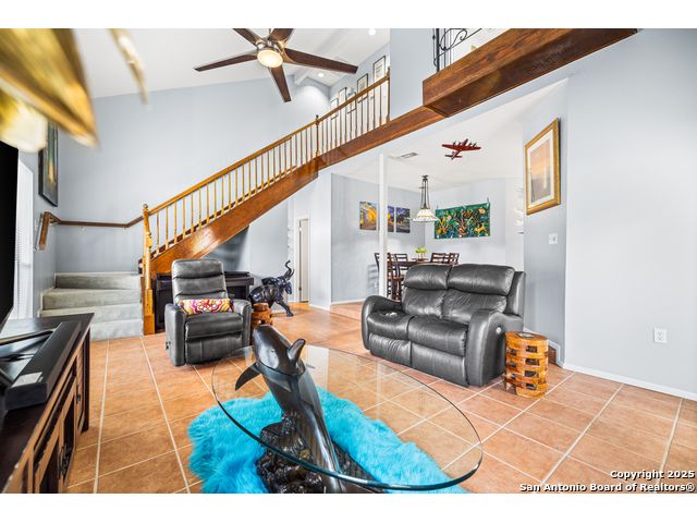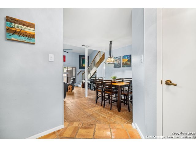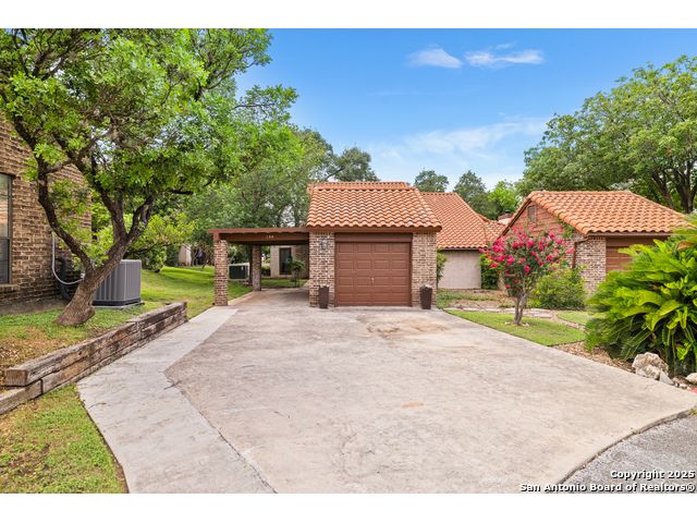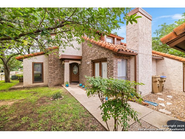 Welcome to the highly sought-after Las Brisas community! Tucked away at the back of this quiet neighborhood, situated right by the community pool, this beautifully designed townhome offers the perfect blend of comfort, style, and convenience. Located just off Hwy 281, you're minutes from Northwoods' premier shopping and entertainment, with easy access to the Pearl and downtown San Antonio. This 3-bedroom, 2.5-bath home features a primary suite on the main level with abundant closet space and upgraded finishes. The entry leads into the dining area and updated kitchen, then steps down into a dramatic great room featuring vaulted ceilings and large windows overlooking the community pool. The open staircase and split-level design give the home a light, airy feel. Upstairs, you'll find two secondary bedrooms connected by a Jack-and-Jill bathroom. One of the bedrooms includes an interior Juliet balcony, adding architectural interest and a touch of elegance that opens to the space below. Additional features include a 1-car garage, 1-car carport, and an extended driveway for plenty of parking as well as a community clubhouse and pool. Whether you're entertaining or enjoying a quiet evening at home, this townhome offers a unique living experience in a tucked-away yet central location. Don't miss this opportunity!
