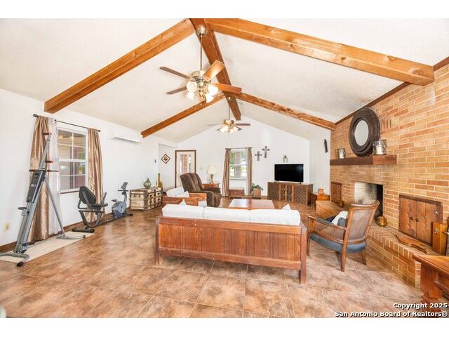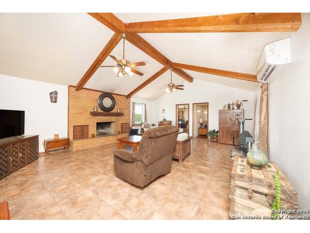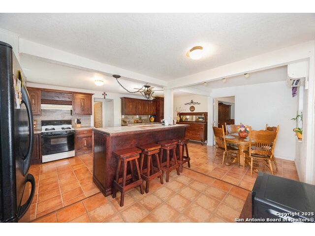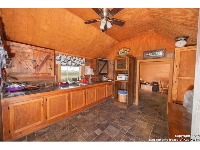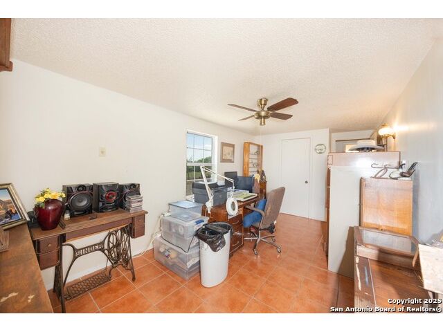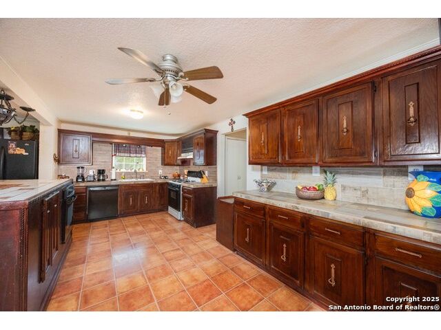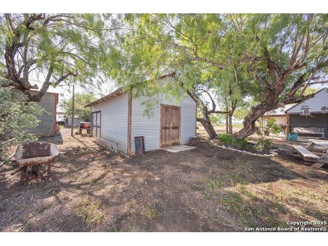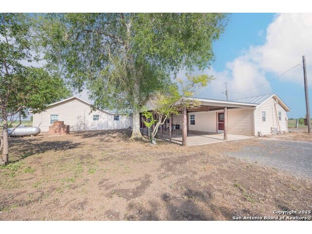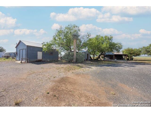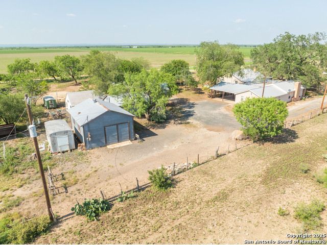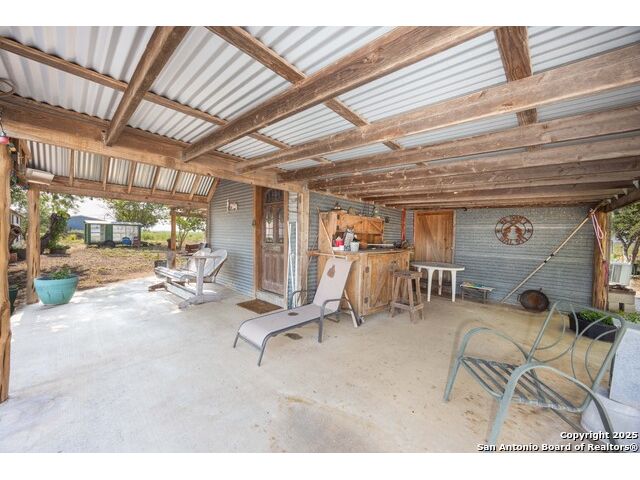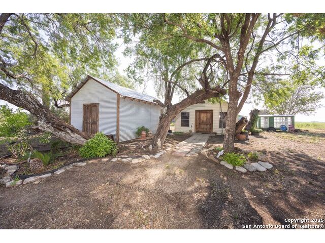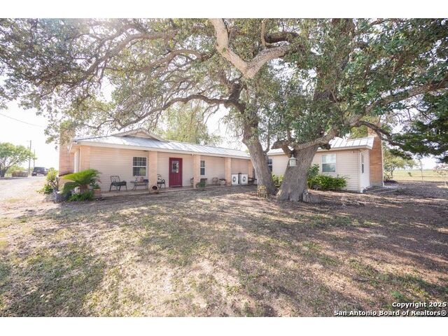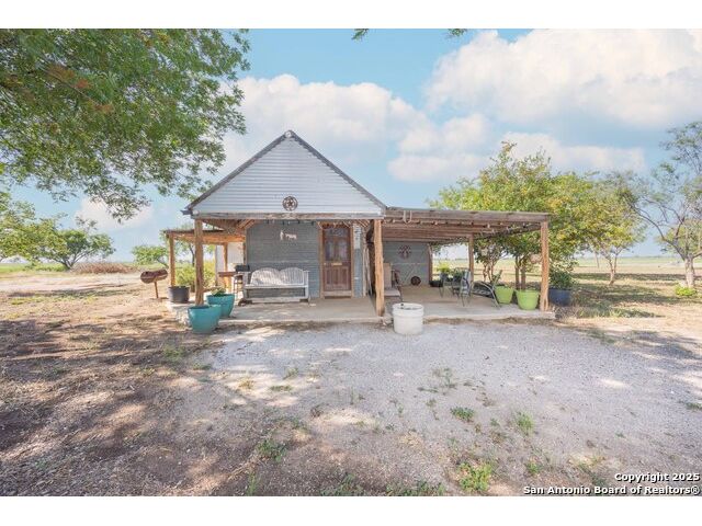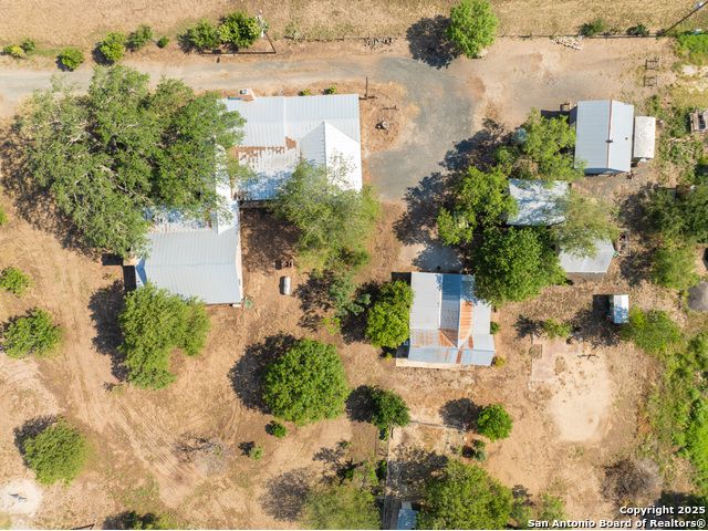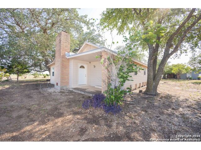 3.71 Acres 4 bedroom, 3 bath, ranch style home with a large kitchen with island and gas cooking. Wood burning fireplace, a large living room and primary bedroom, tile floors, covered porches, large covered parking. Metal standing seam roof installed 08/2021, a 630 ft. deep Edwards water well. The guest house is 1 bedroom, 1 bath with a kitchenette. The property also has an art studio and a separate workshop with an additional storage building. Its a lot to see. Lots of parking around the house and outbuildings.