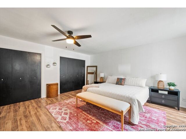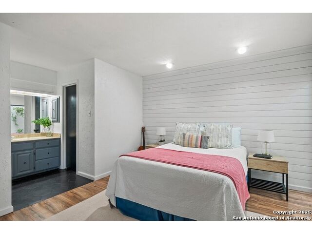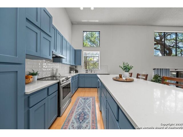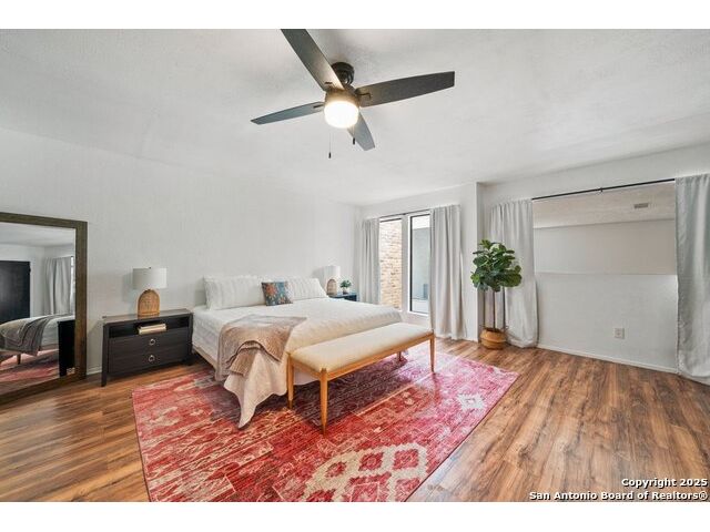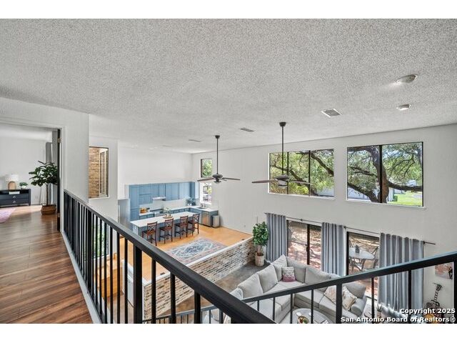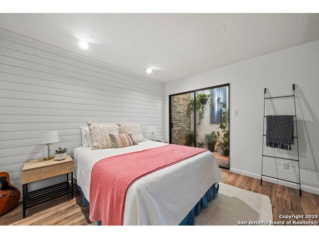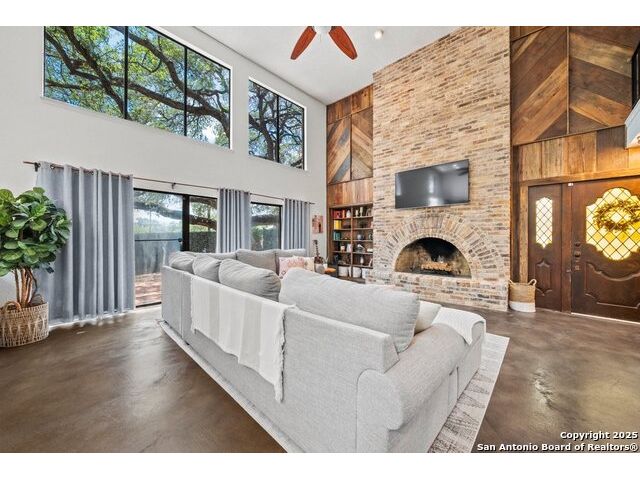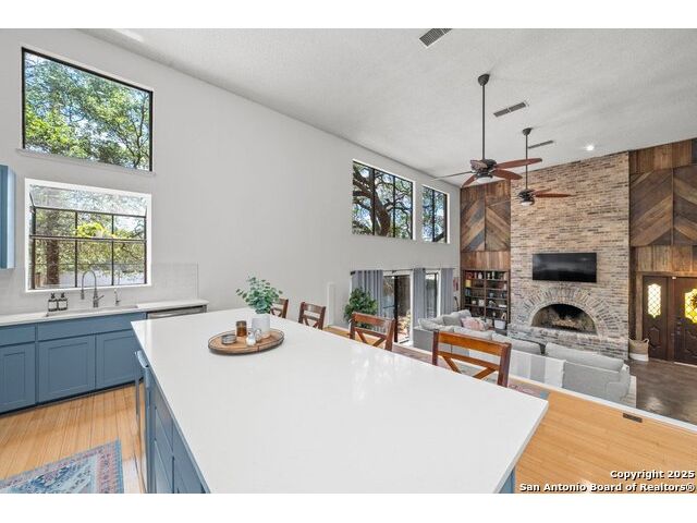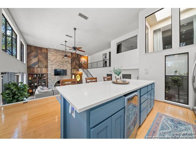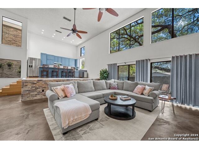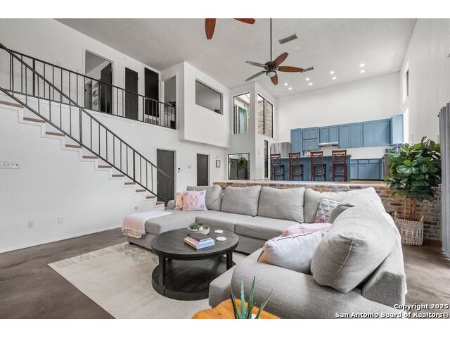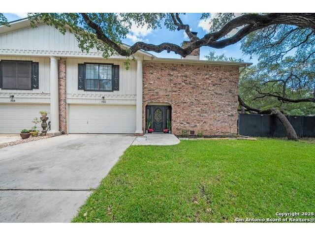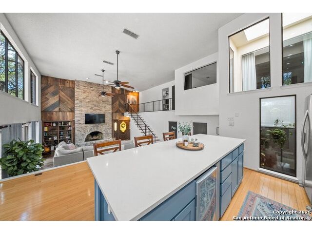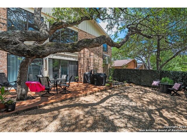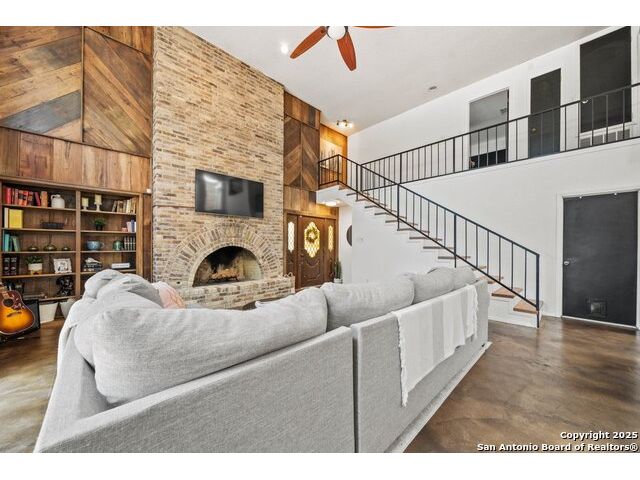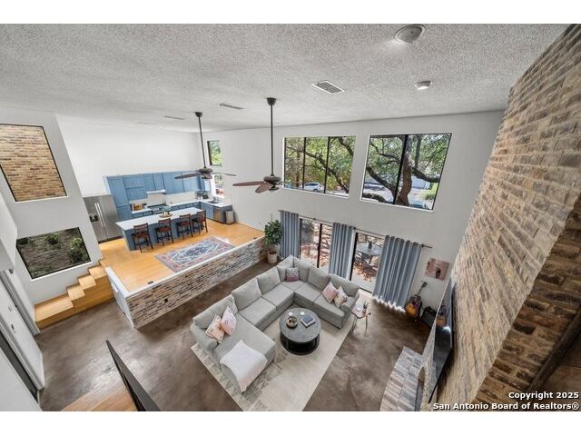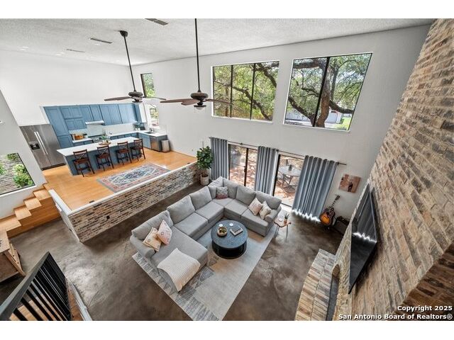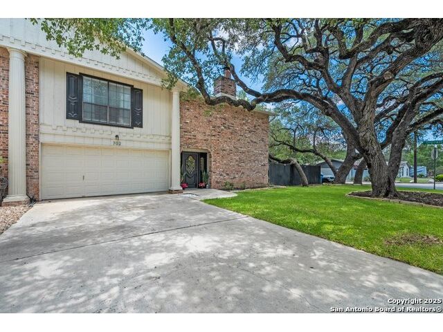 PRIMARY BEDROOM & BATHROOM DOWNSTAIRS! To know it is to love it: inimitable and fabulous contemporary town home sitting on a level, mature-treed corner lot with a sought-after California Blvd address in a continuously desirable area atop the hill just above Landa Park. Soaring 20' ceilings and a glassed atrium make it open and airy, while its architecture offers the rare duo of abundant natural light and privacy. Majestic floor to ceiling brick wood-burning fireplace with beautiful wood herringbone surround. Upstairs features two spacious bedrooms with lots of closet/storage space and joined by a shared bathroom. Moving out back, there's a privacy-fenced backyard and Saltillo tile patio well-suited for outdoor enjoyment. Veramendi-adjacent with convenient access to New Braunfels High School, Landa Park, Loop 337 and all that it connects. No HOA; make this outstanding diamond of a home yours today!