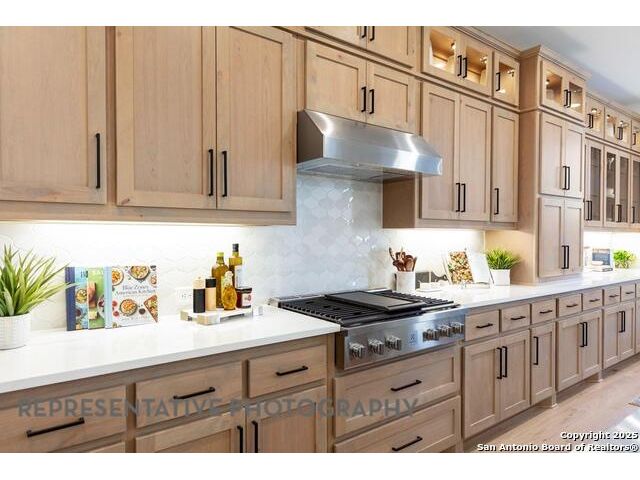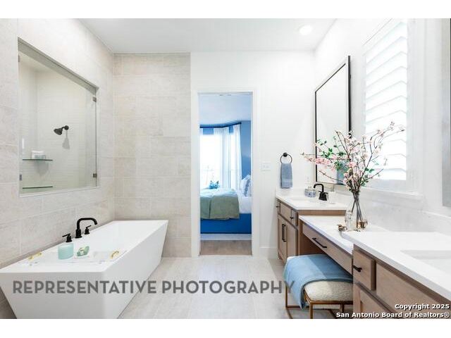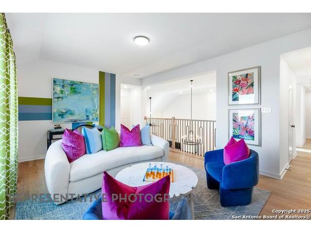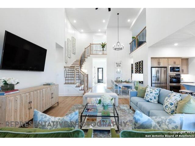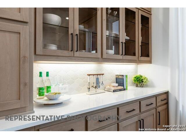 This 2 story brick home backs to a private ranch and features wood floors, neutral interior palette, fireplace, farmhouse sink, built in hutch, entertainment room downstairs with gameroom upstairs, home office, expanded bedrooms, powder bath, free standing tub in primary bathroom, double ovens and many more upgrades. Home under construction with estimated October completion.