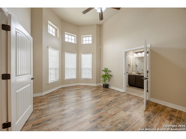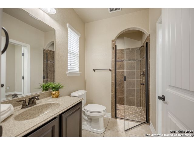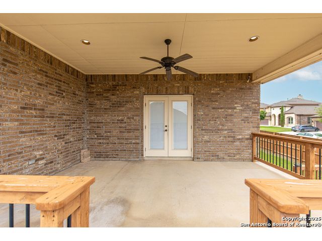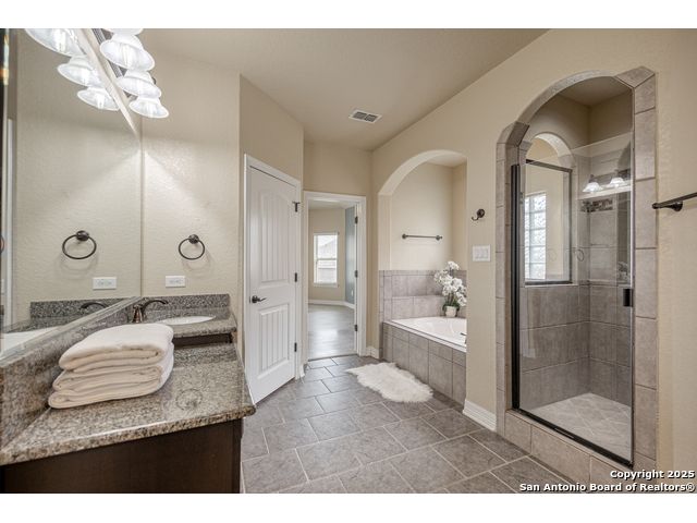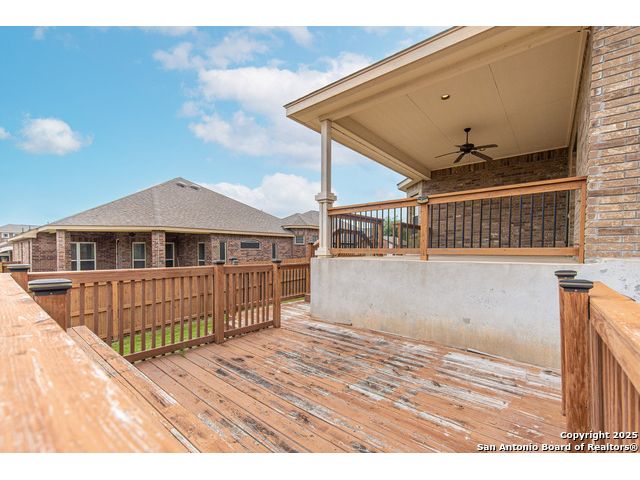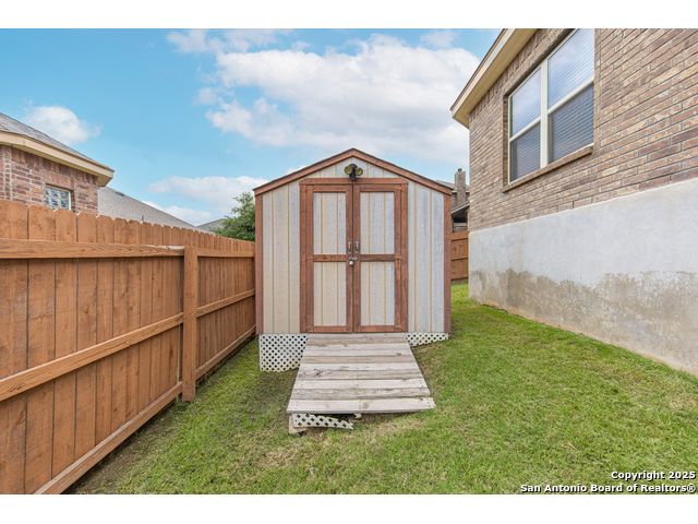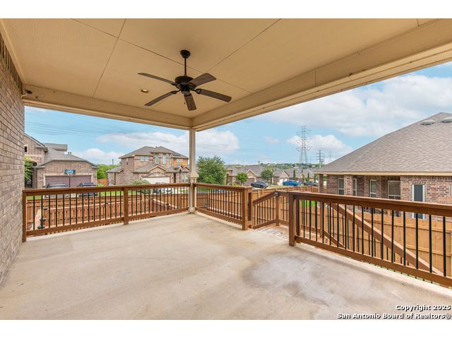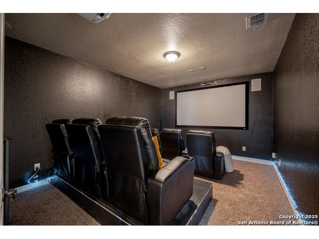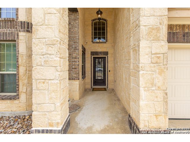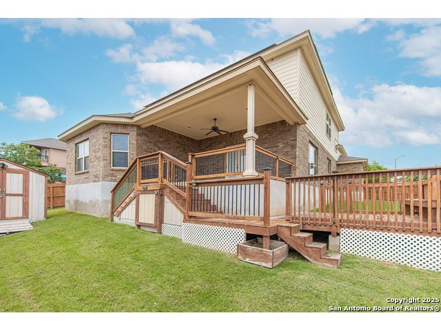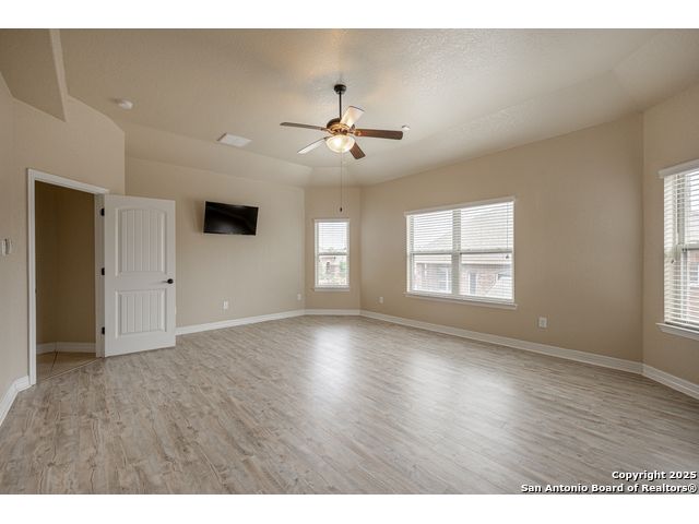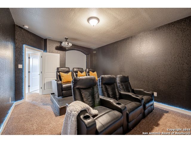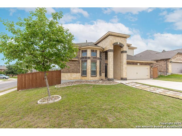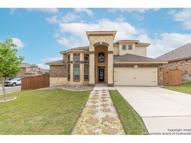CONCESSIONS AVAILABLE *2.65 VA assumable & USDA Qualified! Take a tour of this BIG TEXAS HOME which comes with PAID OFF Solar panels. 3,530 square feet- Welcome to 11102 Butterfly Bush, at the corner of Butterfly Bush & Winter Cherry in the sought after Spurs Ranch Community. Built in 2014, this New Leaf Home has been beautifully maintained. TOUR it today. 4.5-bath home offers over 3,500 sq ft of open living space Property Highlights: 4 Spacious Bedrooms with big walk-in closets, including three private ensuites, two deep soaking garden tubs, plus three stand alone showers. Two primary bedrooms are located downstairs. One primary has two separate vanities and two big walk-in closets. The guest half bath is conveniently located downstairs. This is a gourmet kitchen which features wrap-around granite counters, a large center island, bar seating, and rich dark mahogany wood soft close cabinetry. This home includes an elegant dining area with soaring ceilings and an open flow. Upstairs includes a bedroom with an ensuite, versatile open loft, a dedicated theater room. Furniture and audio/video components in theater room convey. Outside has a multi-level deck with spacious covered patio perfect for entertaining or unwinding in the evenings. Paid-Off Solar Panels = energy savings year-round. TWO AC units. Large 2 car Garage + Outdoor Shed for additional storage. Prime Location: Minutes from Loop 1604, Hwy 90, Costco, shopping, dining, and entertainment. Quick commute to Lackland AFB, downtown San Antonio, and Castroville. Enjoy the perks of a growing community with nearby schools, parks, and amenities. This home combines grand Texas style with thoughtful functionality.