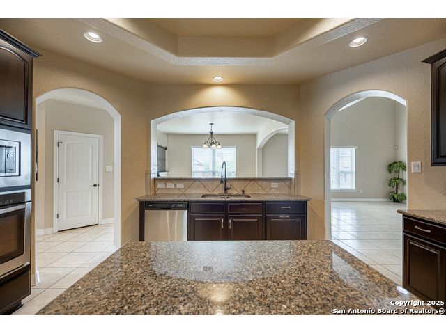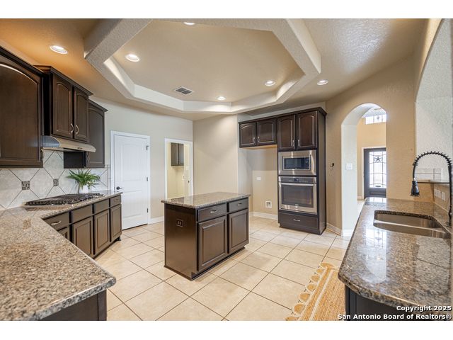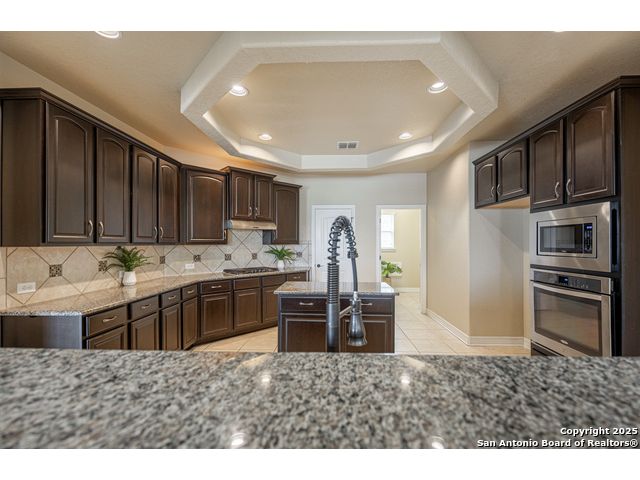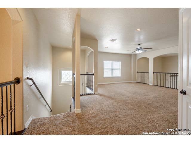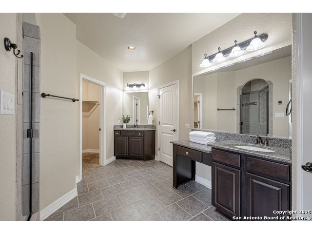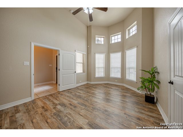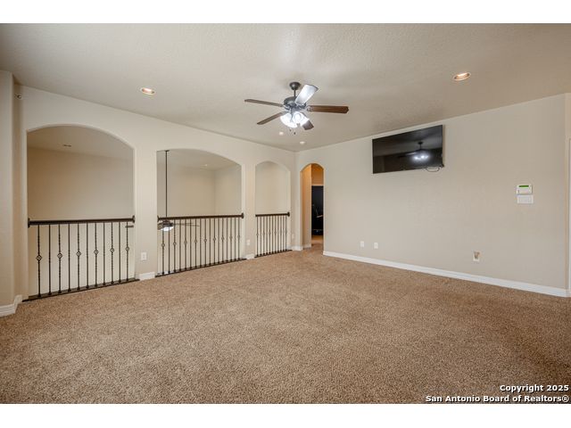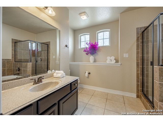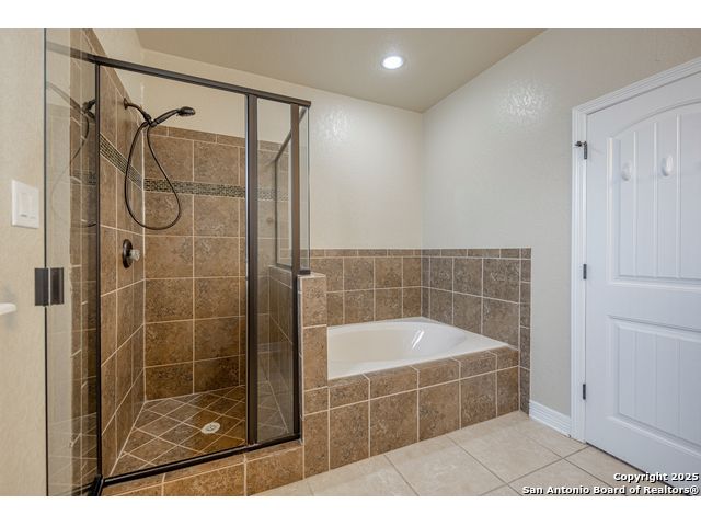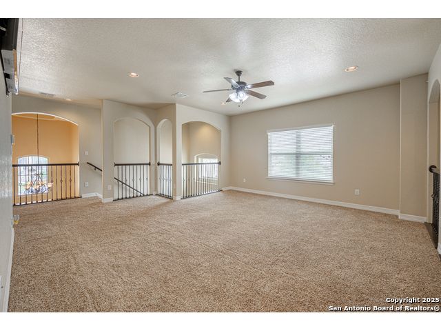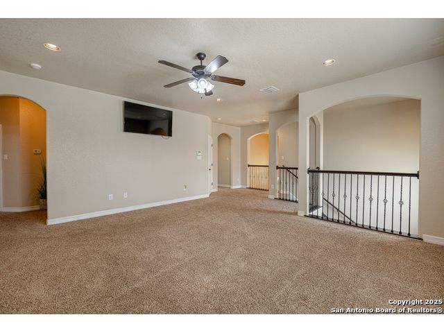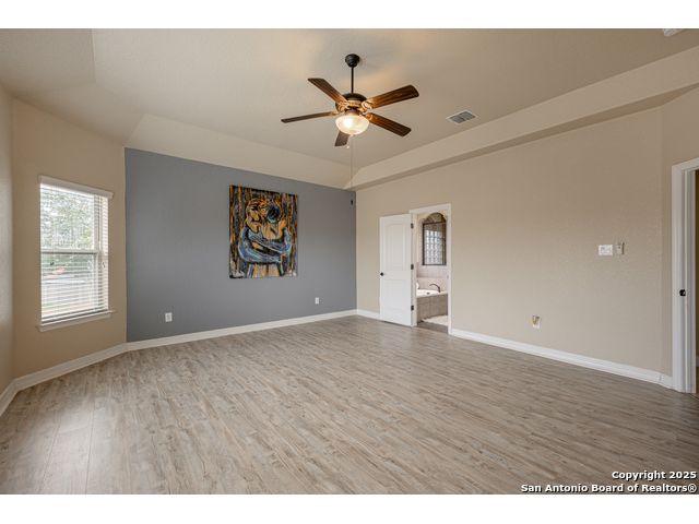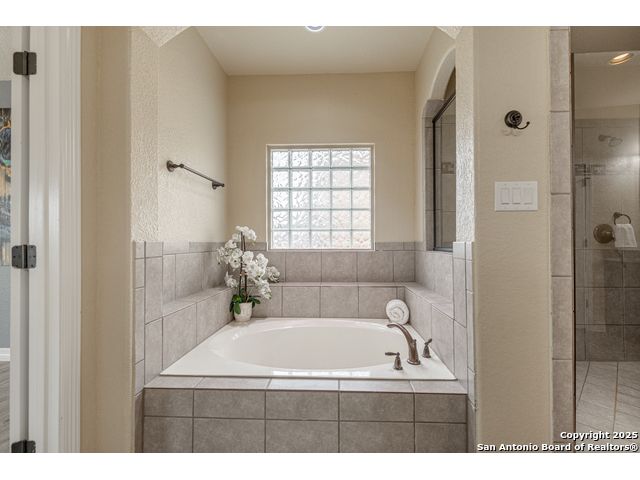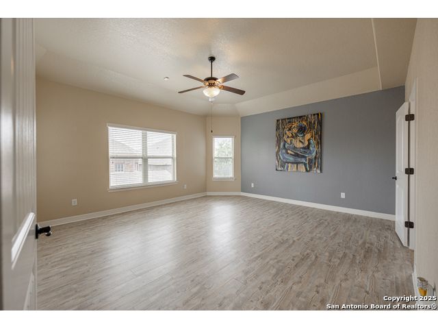 CONCESSIONS AVAILABLE *2.65 VA assumable & USDA Qualified! Take a tour of this BIG TEXAS HOME which comes with PAID OFF Solar panels. 3,530 square feet- Welcome to 11102 Butterfly Bush, at the corner of Butterfly Bush & Winter Cherry in the sought after Spurs Ranch Community. Built in 2014, this New Leaf Home has been beautifully maintained. TOUR it today. 4.5-bath home offers over 3,500 sq ft of open living space Property Highlights: 4 Spacious Bedrooms with big walk-in closets, including three private ensuites, two deep soaking garden tubs, plus three stand alone showers. Two primary bedrooms are located downstairs. One primary has two separate vanities and two big walk-in closets. The guest half bath is conveniently located downstairs. This is a gourmet kitchen which features wrap-around granite counters, a large center island, bar seating, and rich dark mahogany wood soft close cabinetry. This home includes an elegant dining area with soaring ceilings and an open flow. Upstairs includes a bedroom with an ensuite, versatile open loft, a dedicated theater room. Furniture and audio/video components in theater room convey. Outside has a multi-level deck with spacious covered patio perfect for entertaining or unwinding in the evenings. Paid-Off Solar Panels = energy savings year-round. TWO AC units. Large 2 car Garage + Outdoor Shed for additional storage. Prime Location: Minutes from Loop 1604, Hwy 90, Costco, shopping, dining, and entertainment. Quick commute to Lackland AFB, downtown San Antonio, and Castroville. Enjoy the perks of a growing community with nearby schools, parks, and amenities. This home combines grand Texas style with thoughtful functionality.