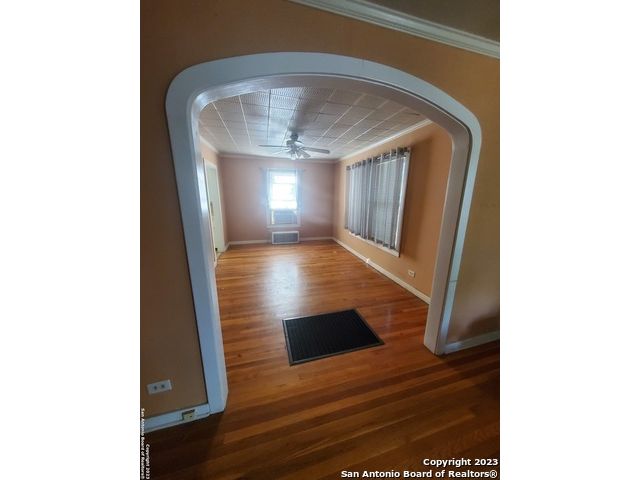 Vintage home with beautiful wood floors and large rooms . Fireplace in living room and large, separate dining room with graceful arch between the two. Backyard has large shady patio, and detached 2 car garage with workshop area. Over 1/4 acre, on a street of the same vintage homes with lovely architectural details. Minutes from downtown .