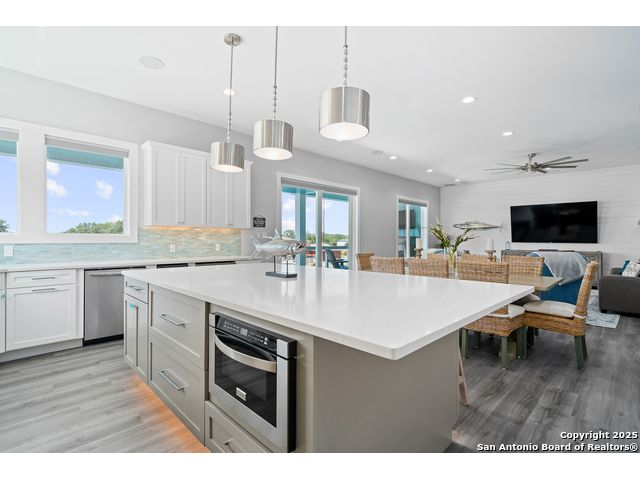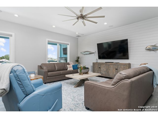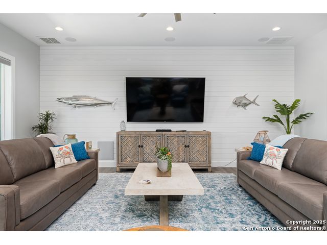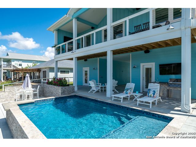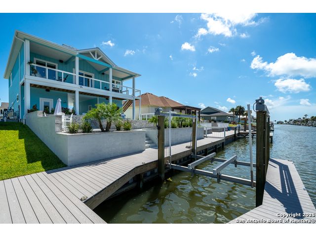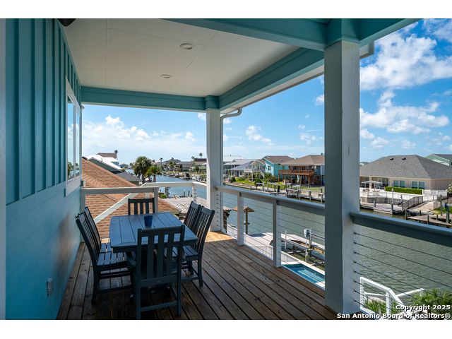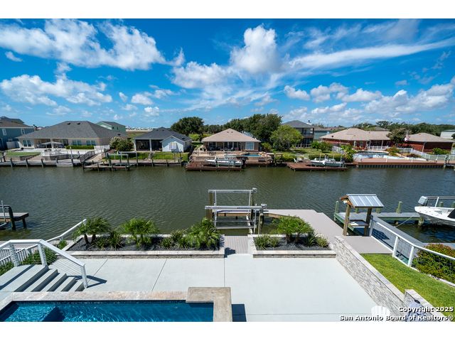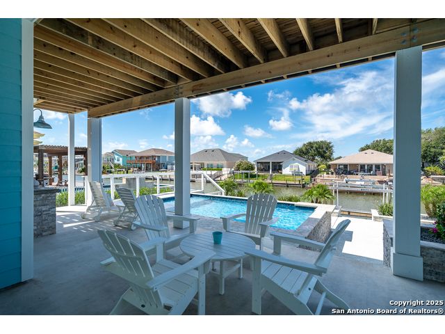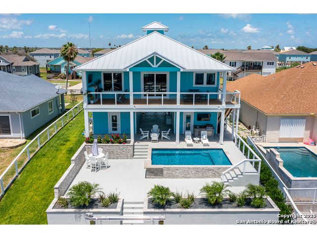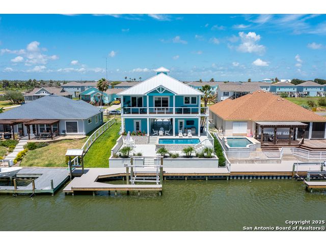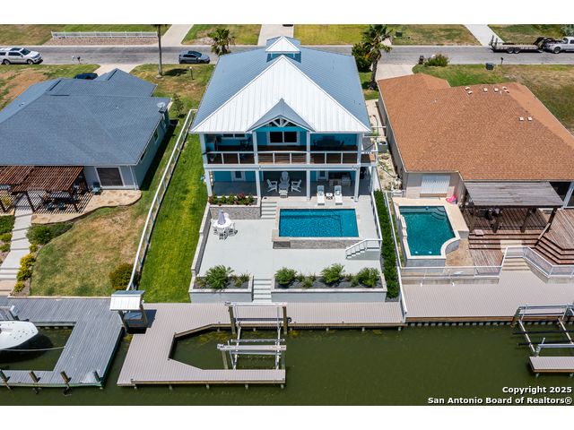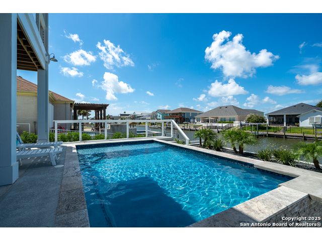 Welcome to your dream coastal escape! This luxurious 5-bedroom, 4-bathroom waterfront home is perfectly designed and fully furnished for relaxation, recreation, and entertaining. Nestled on a quiet canal, this spacious getaway features an open floor plan, high-end finishes, resort-style amenities like a Private Pool and Fishing Dock. 5 Spacious Bedrooms - Each with its own TV and custom high-end furnishings. 4 Modern Bathrooms - All with backlit defrosting mirrors; master includes a "U by Moen" Smart Shower with programmable temperature control. Private Heated Pool - App-controlled, perfect for relaxing, grilling, or watching the game on the outdoor TV. Gourmet Kitchen - Equipped with a 6-burner Z-line gas stove, wine fridge, stand-alone icemaker, soft-close cabinets, under-cabinet lighting & a built-in beverage fridge. Smart Home Features - Remote locks, five Ring cameras, app-based sprinkler system, and Cat 5 wiring throughout. Outdoor Gas Fireplace - On the upstairs patio, under a mounted TV - the ultimate spot for cozy evenings. Private Fishing Dock - Complete with a green light for night fishing, kayak landing & fish cleaning station. Sonos Stereo System - Indoor and outdoor zones for seamless sound. Ample Parking - 8-car driveway. Professionally Landscaped - With accent lighting and foam insulation for energy efficiency. Air-conditioned tackle/storage room & ample closet space. Built post-Harvey with hurricane-rated Pella windows and doors, metal roof, and foam insulation, this home offers peace of mind, comfort, and a strong rental history. Low HOA fees make it a smart investment for personal use or short-term rental. Another incredible attribute to the home is that the HOA takes care of the bulkhead which is a valuable asset. Whether you're lounging poolside, fishing off the dock, or grilling while watching your favorite team, this property offers the ultimate blend of luxury, technology, and coastal lifestyle. This is the ONE!!