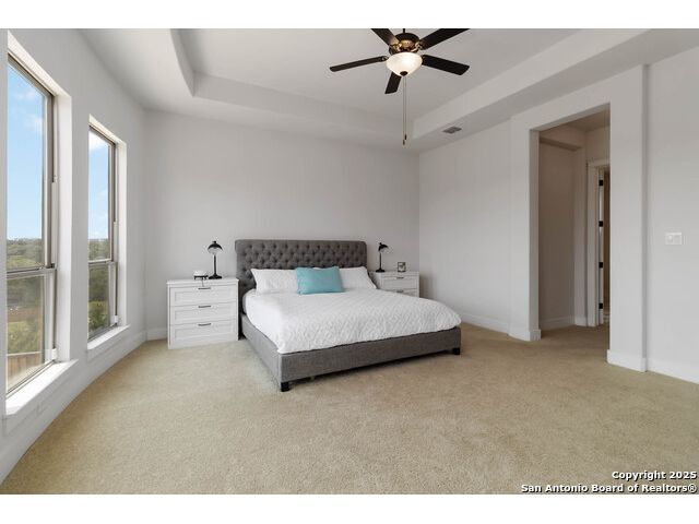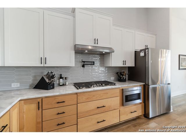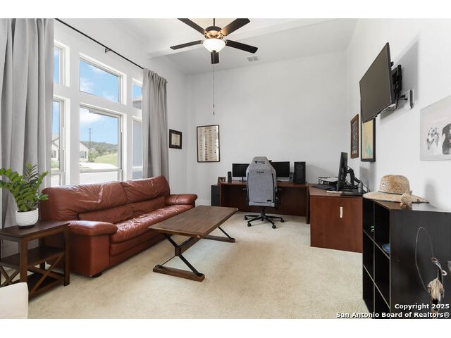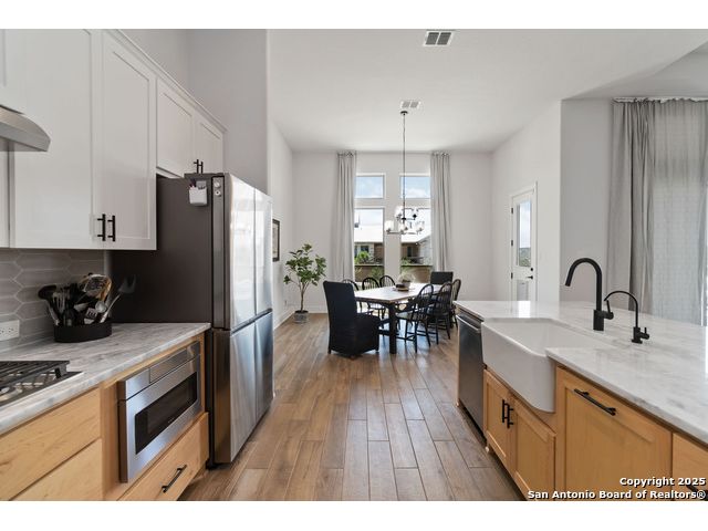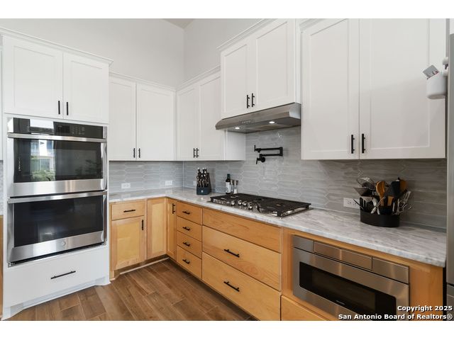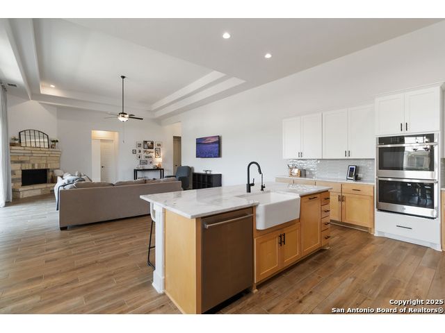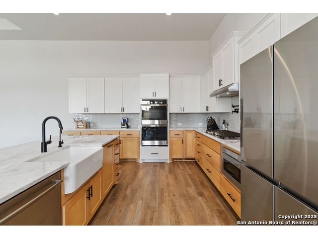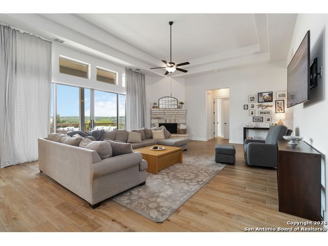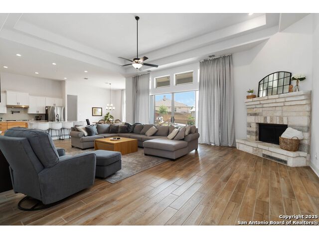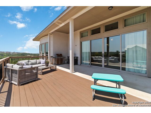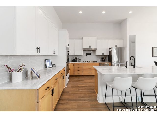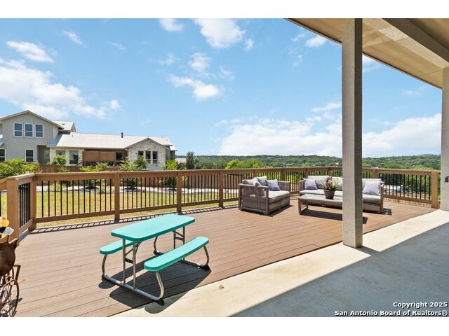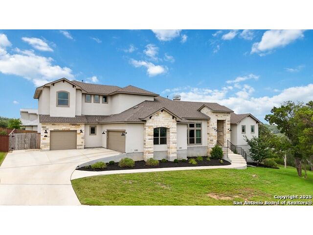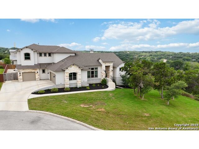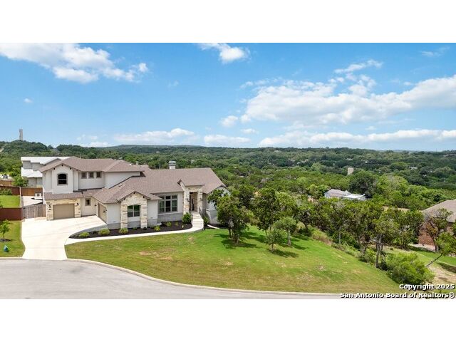 Skip the build-this 4-bed, 3.5-bath Highland Estates beauty is move-in ready, with $10,000 Buyer Incentive included! Set on over half an acre at the end of a quiet cul-de-sac, this custom home blends Hill Country charm with modern convenience. Catch breathtaking sunsets from the expansive deck or enjoy storm-watching through the sleek sliding glass wall in the spacious open living area, warmed by a corner gas fireplace. The chef's kitchen impresses with multi-burner gas cooking, pot filler, double ovens, two-tone cabinetry, granite counters, and a huge walk-in pantry tucked under the stairs. The split primary suite offers a spa bath retreat and incredible 3-tier custom closet. A second main-level bedroom with ensuite bath is ideal for guests or multi-generational living. Two dedicated offices make work-from-home days easy. Upstairs, two additional bedrooms feature separate vanities connected by a Jack-and-Jill bath, plus a versatile media/game room. The oversized 3-car garage includes a separate bay-perfect for extra storage, a workshop, or home gym. With timeless design, elevated comfort, and prime location near Stone Oak amenities, this Highland Estates gem delivers everything you want-without the cost and wait of new construction.